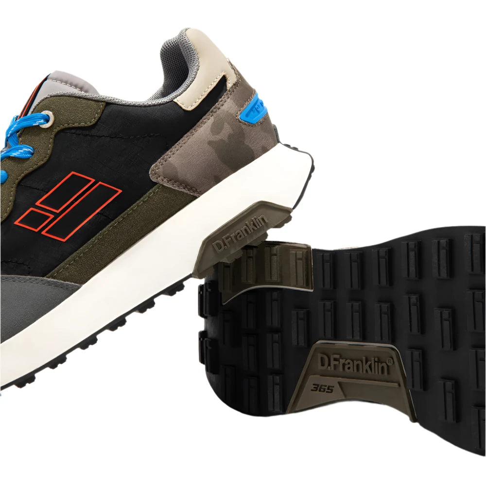 This model combines different colours and details that highlight its uniqueness. It has the D.Franklin flag on the side and printed laces for a perfect fit. In addition, it has a two-density sole. The first one is made of recycled materials for a comfortable and light tread, and the second one is embossed to provide grip.