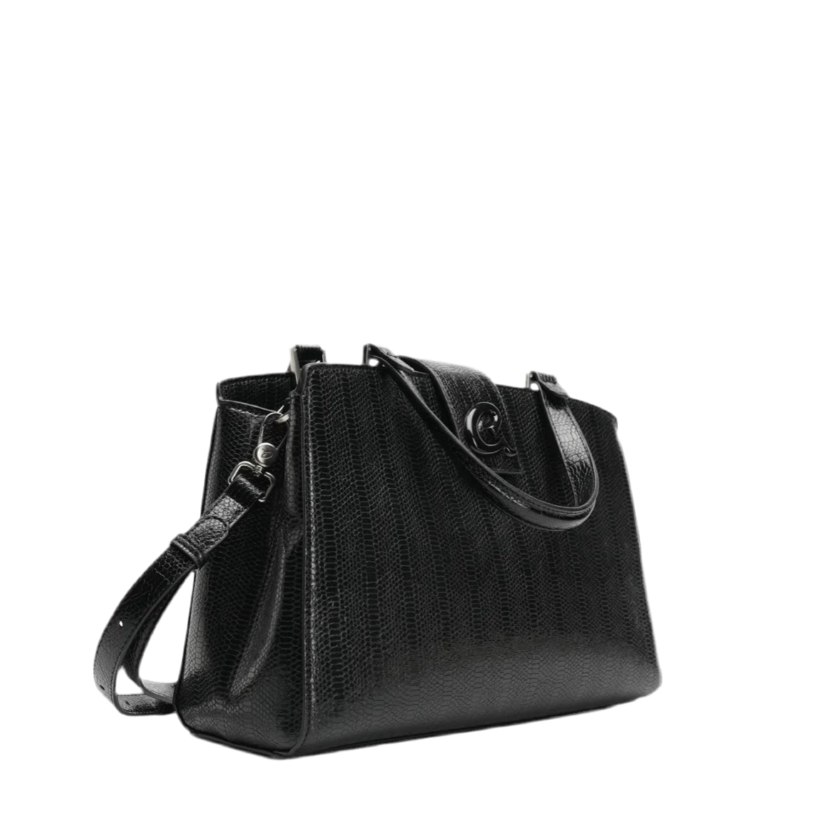 Women's Caprice handbag made of high quality faux leather. It has a double handle and a detachable adjustable strap so it can be used as a crossbody. Inside, it has a central zip compartment and open pockets on the sides. It closes with a three-dimensional magnetic 'a' clasp. A spacious bag with a croco texture that makes it timeless.