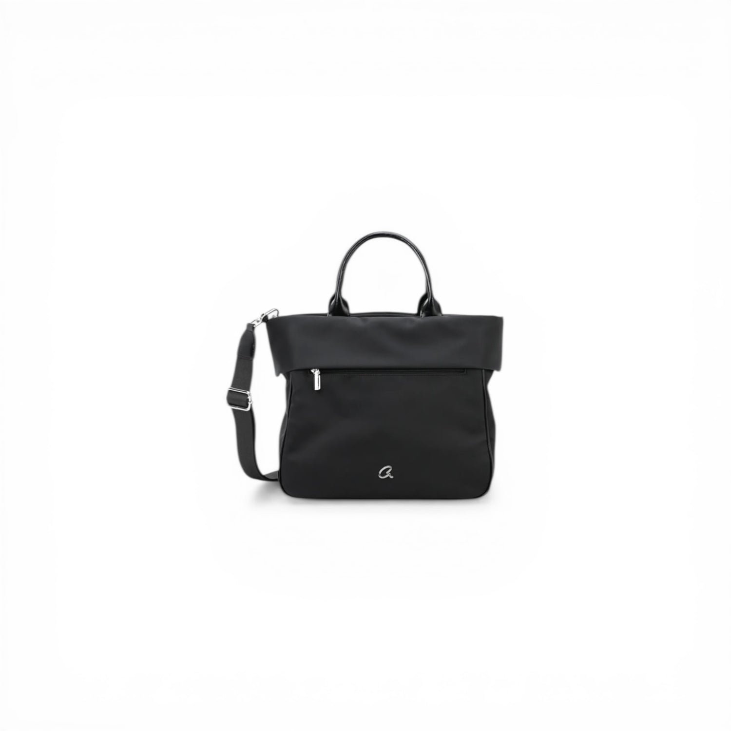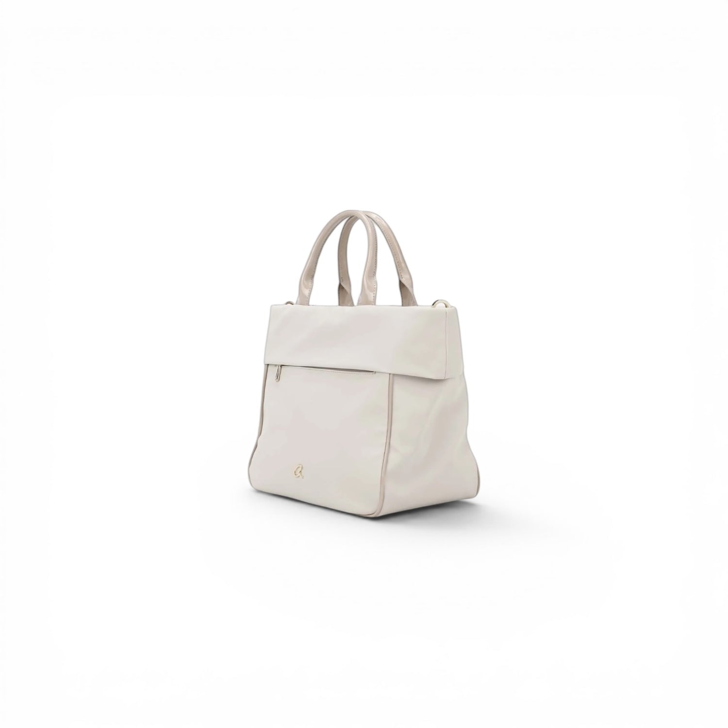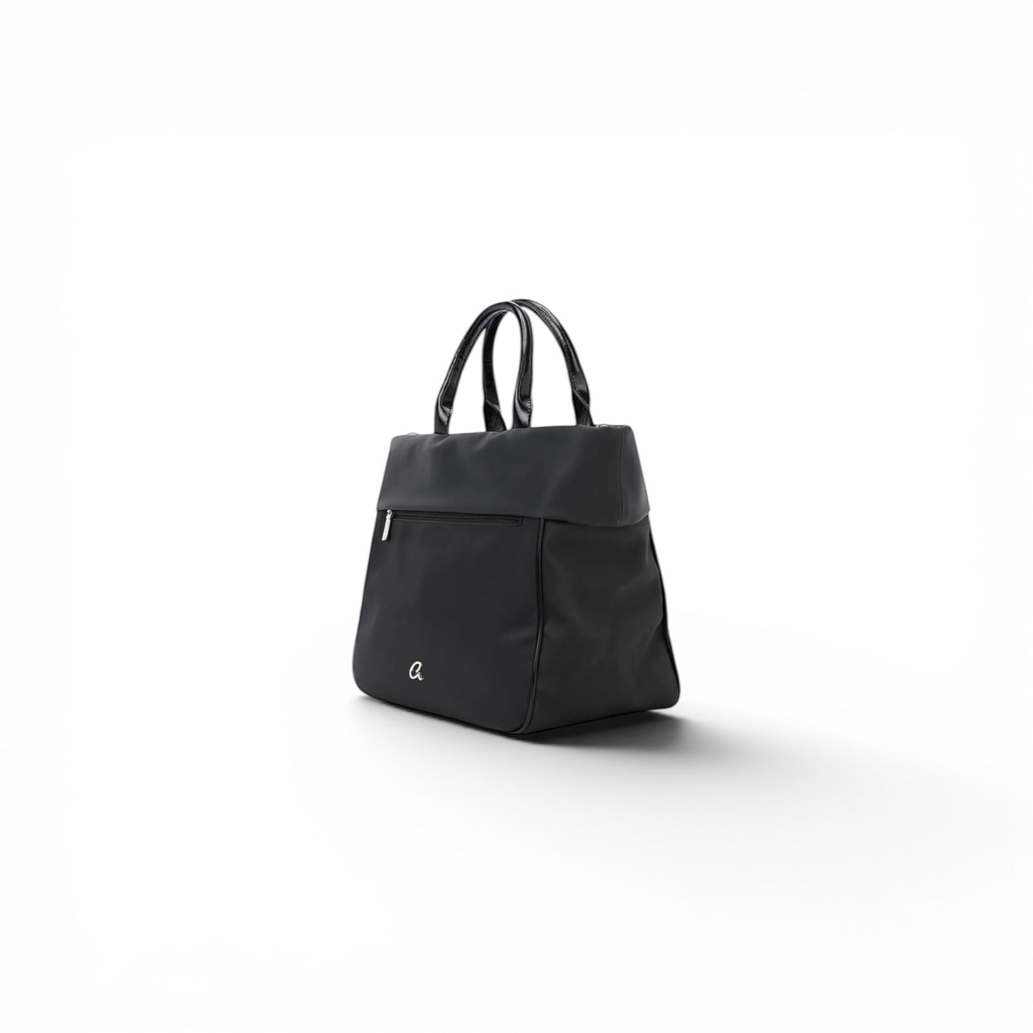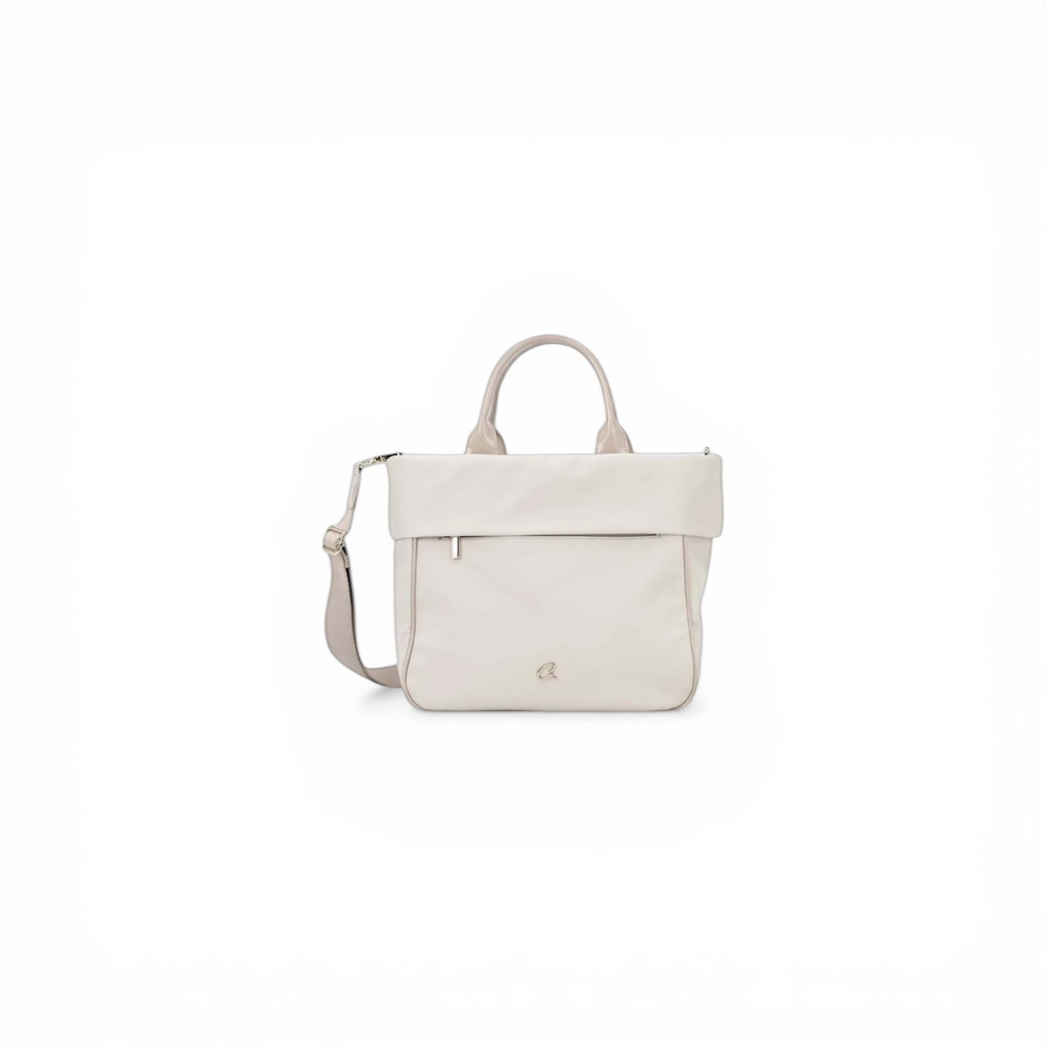 Women's handbag made of high-quality synthetic leather. It is lined on the inside and has compartments and a zippered pocket. It has back and front pockets, providing extra secure storage space. The double handles and detachable strap make it easier to carry and it closes with a zipper.