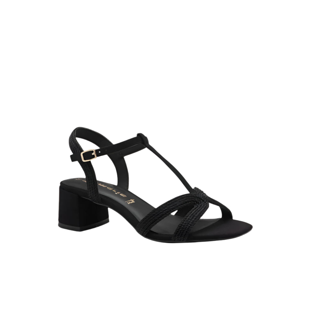 Experience the glamorous chic of these elegant sandals that perfectly combine modern design and timeless sophistication. Made of high-quality textile, they boast braided straps and a sturdy block heel of 5.0 cm that provides optimal comfort. Whether it's a festive evening event or a wedding, the harmonious combination of black and metallic shimmering gold adds a touch of glamour and style to every step. Let yourself be enchanted and create unforgettable moments on special occasions.