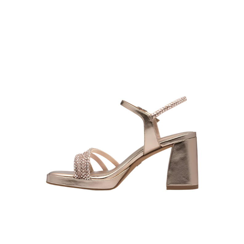Made from an elegant mix of materials, these glamorous sandals add a touch of extravagance to your outfit. In shimmering pink and eye-catching metallic gold or silver, they elevate any occasion, be it a wedding or a festive evening event. With a high block heel of 8.0 cm and sparkling rhinestones, they skilfully elevate your look, while the buckle closure ensures easy access. Let yourself be inspired by its modern style and enjoy the looks that you will surely have.