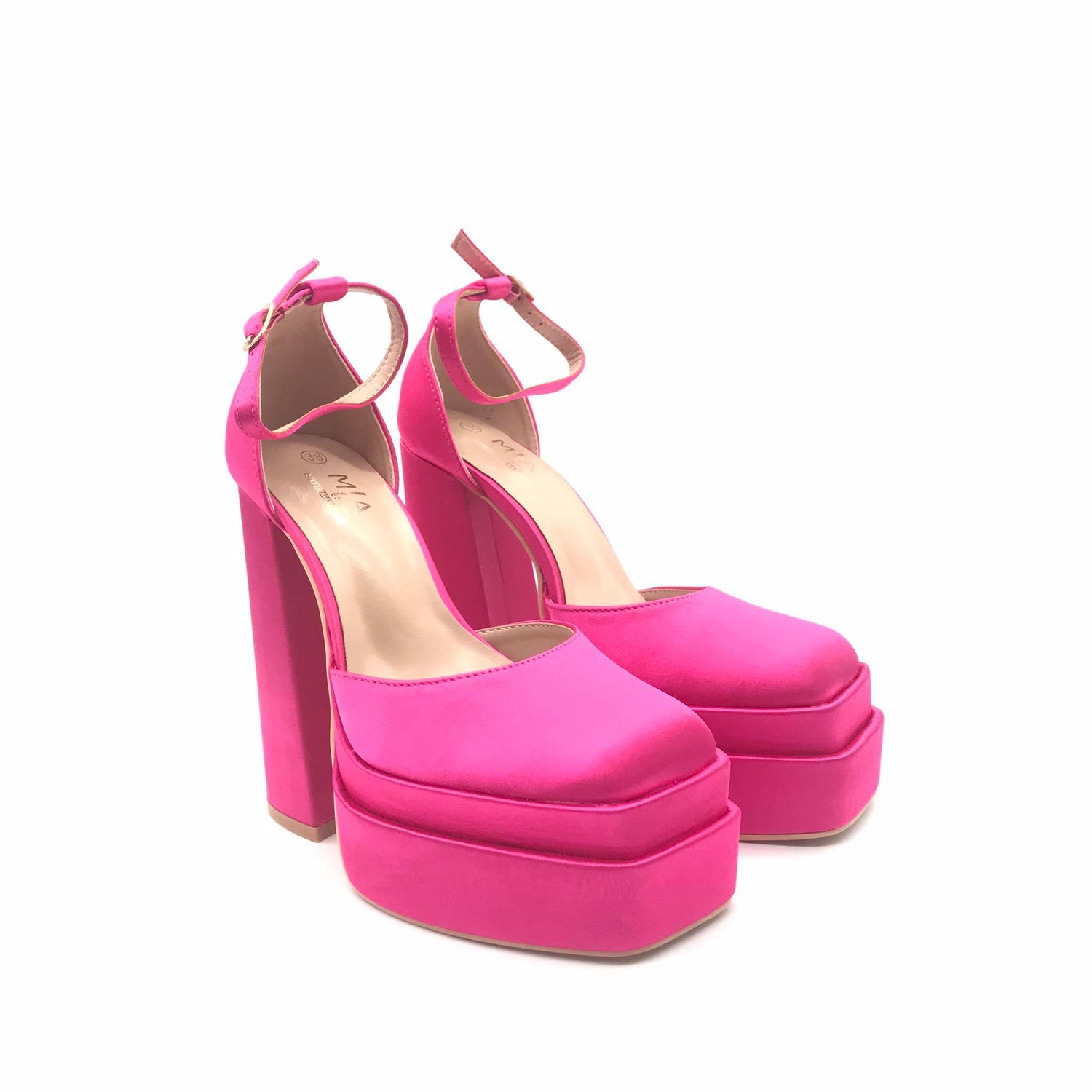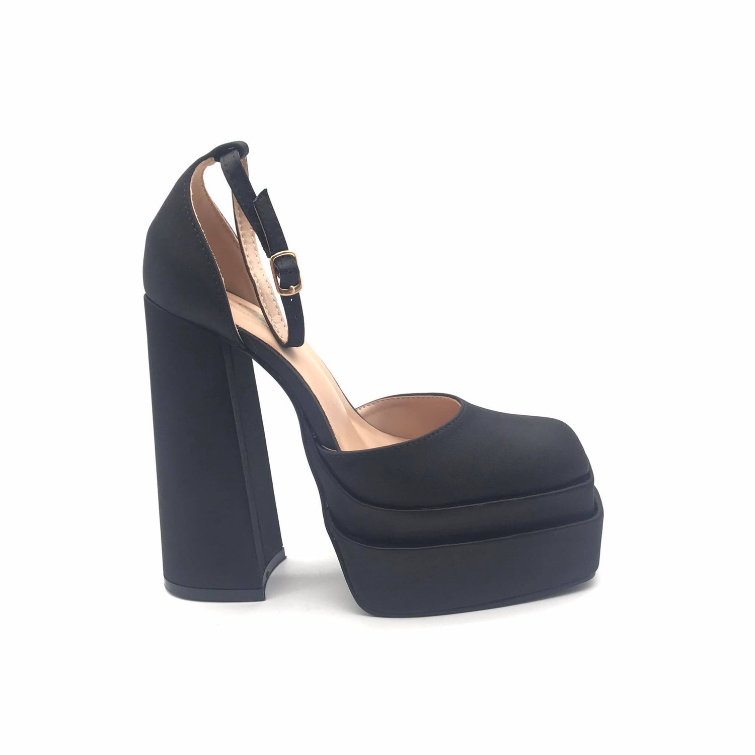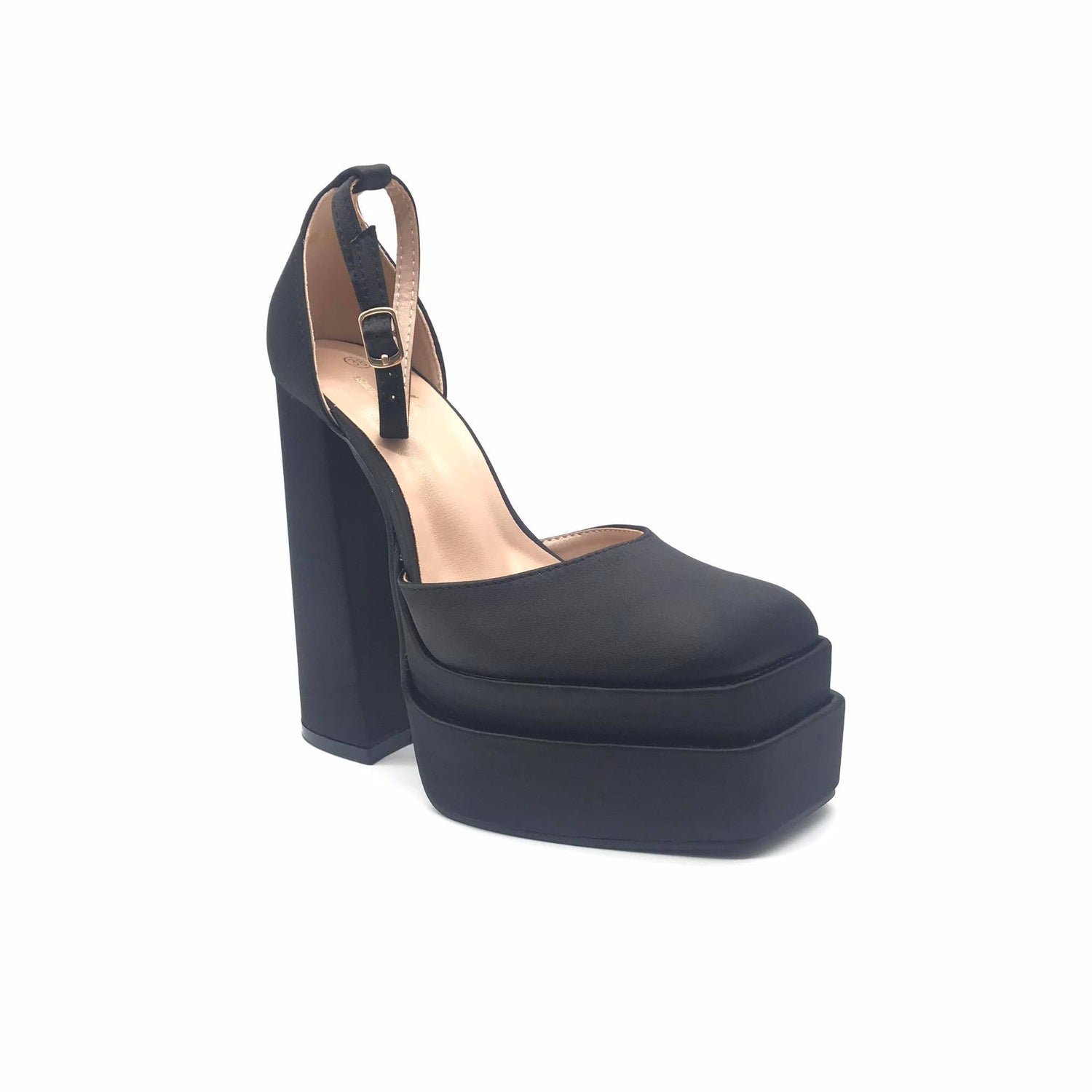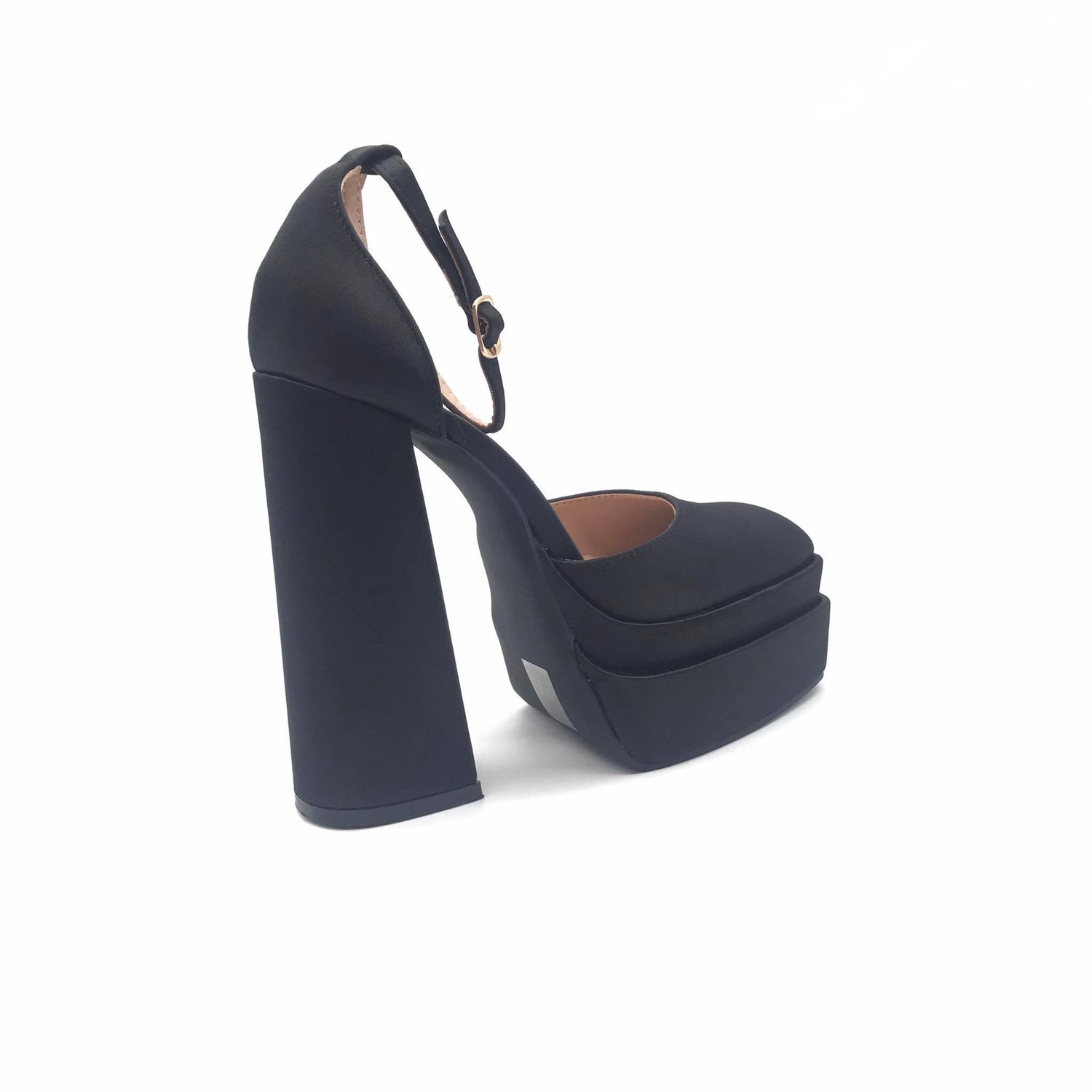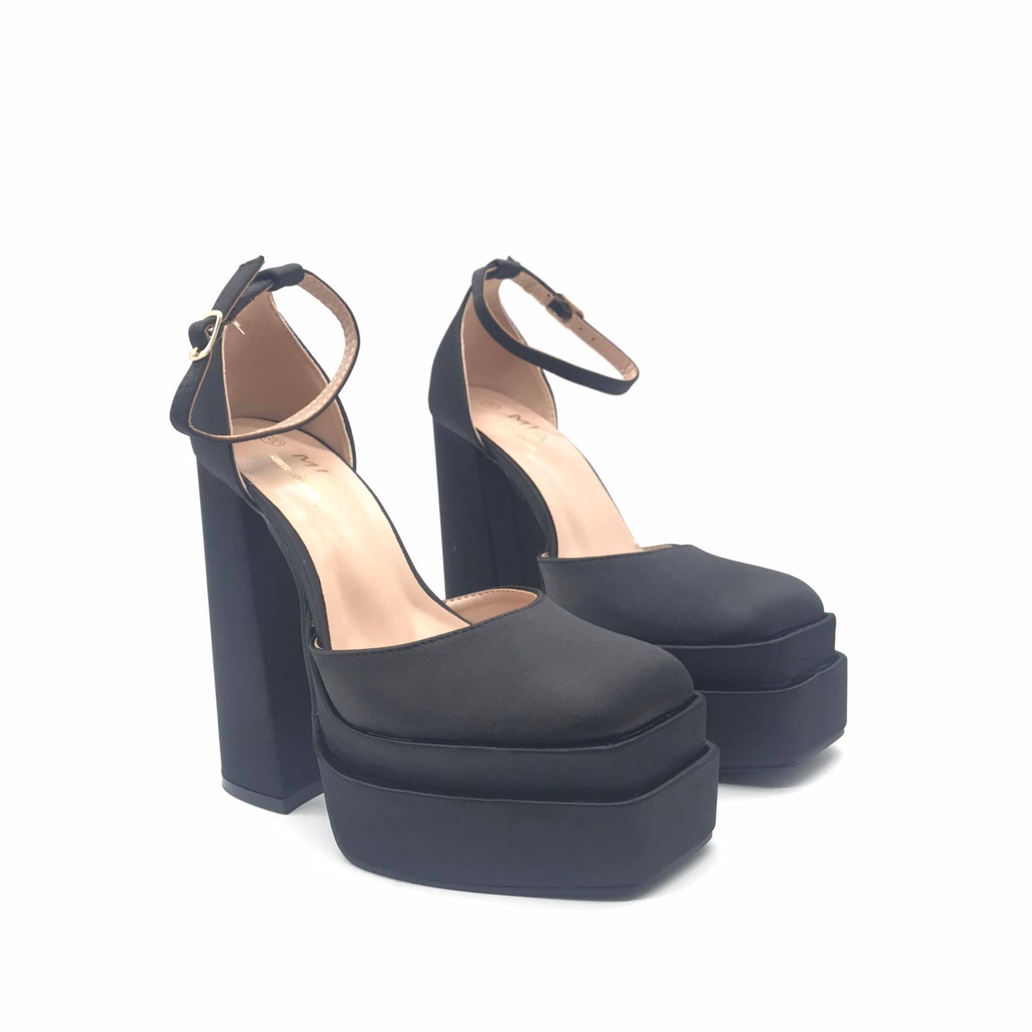 - Σατέν πέδιλα με μπλοκ τακούνι