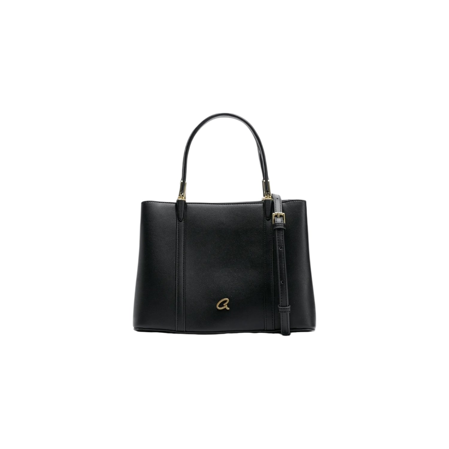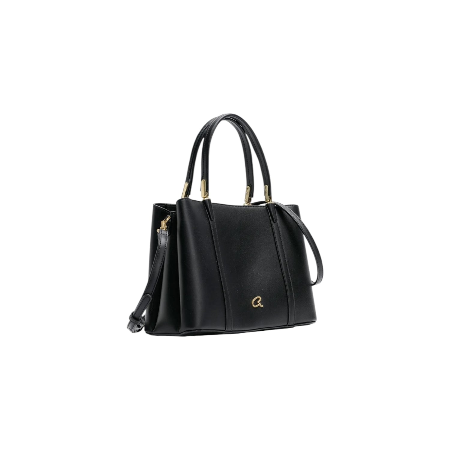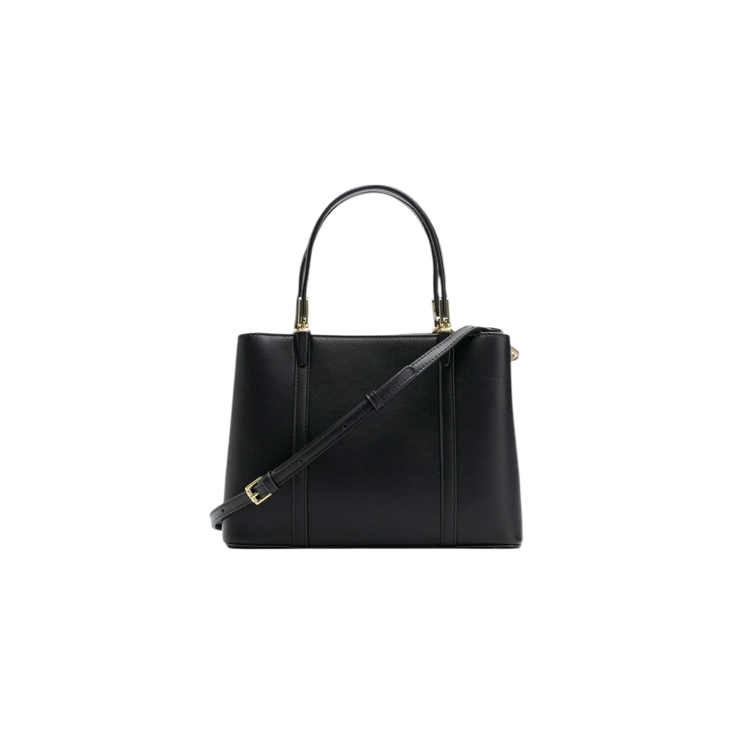 Women's handbag Odetta, made of high quality faux leather. It has a double handle and an additional detachable strap to be worn as a crossbody. Inside it is divided into three compartments, two side ones and a central one that includes open pockets and a zippered pocket for easy organization. It secures with magnetic closures and a zipper. With gold details that complete its appearance. A classic bag, suitable for any look.