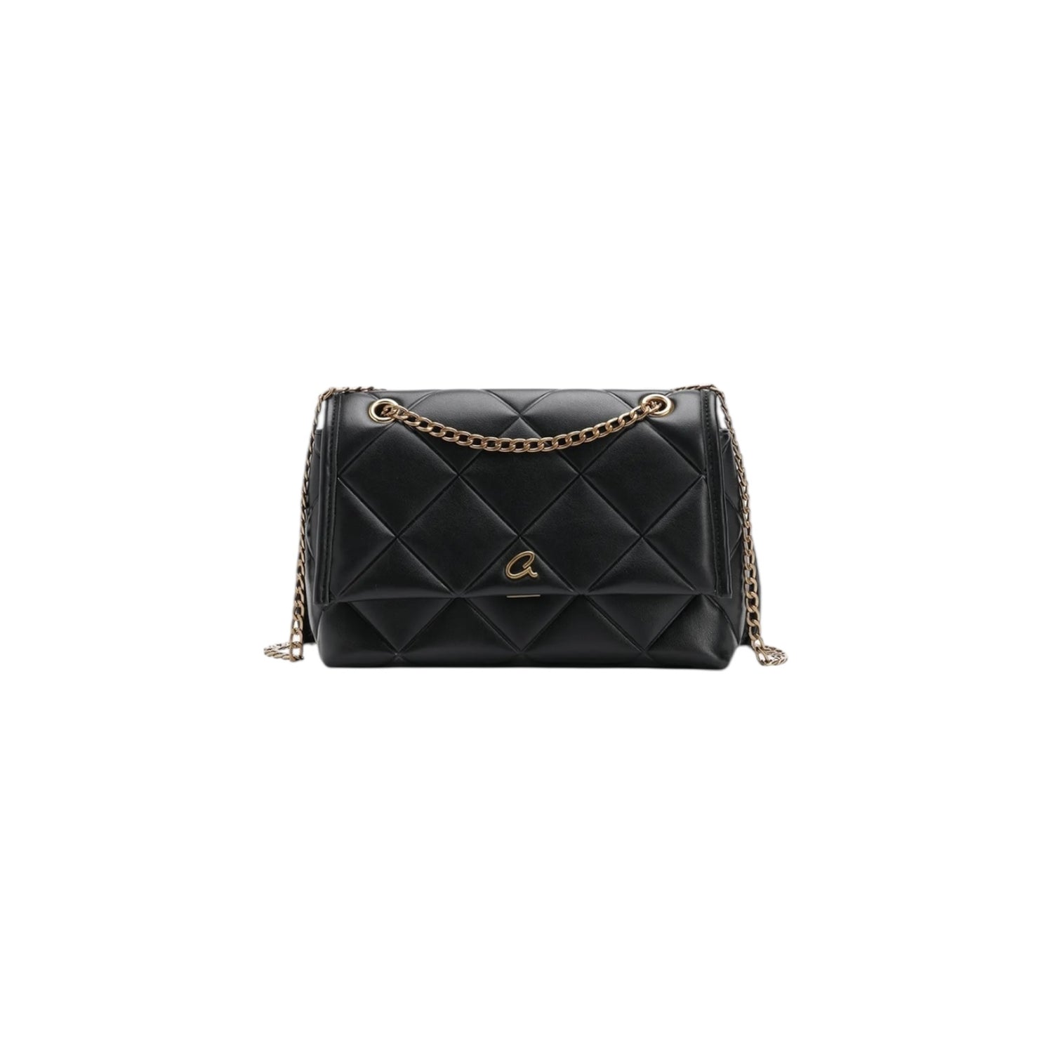 Women's shoulder bag Lene, made of faux leather with debossed quilted technique. The interior is lined and contains an open pocket and a zippered pocket for organizing small items. The chain has faux leather on the shoulder for comfort in carrying and can be adjusted to be worn as a crossbody. It secures with a metal clasp on the flap. A beautiful bag with modern look, suitable for morning or evening outfits.