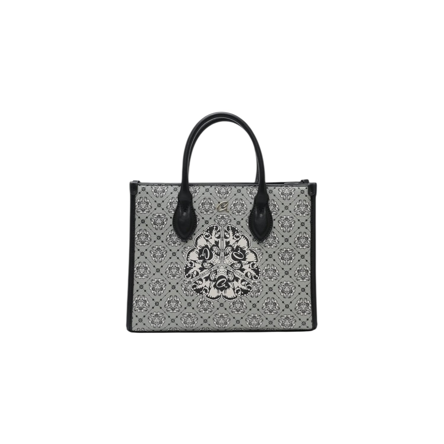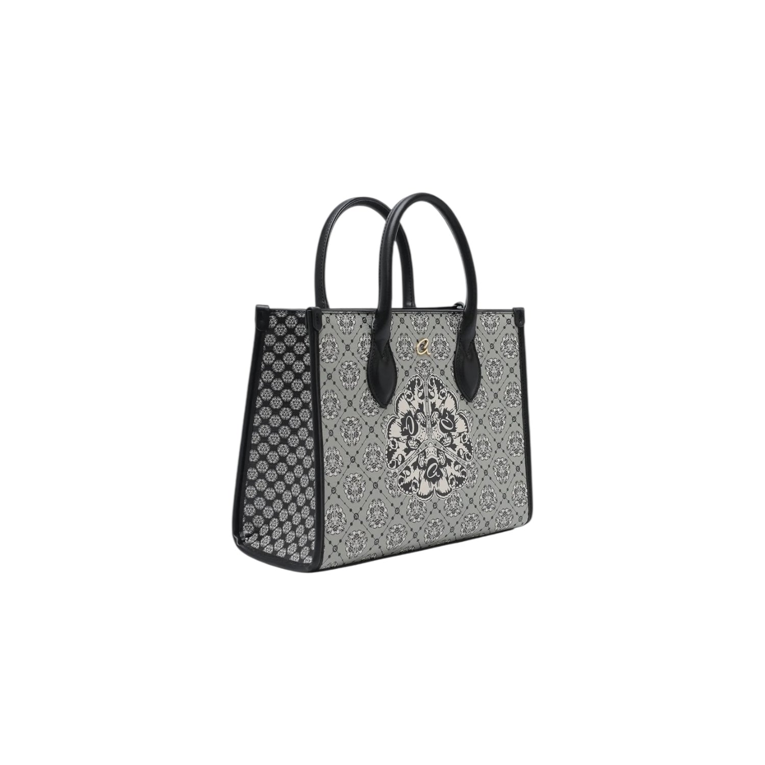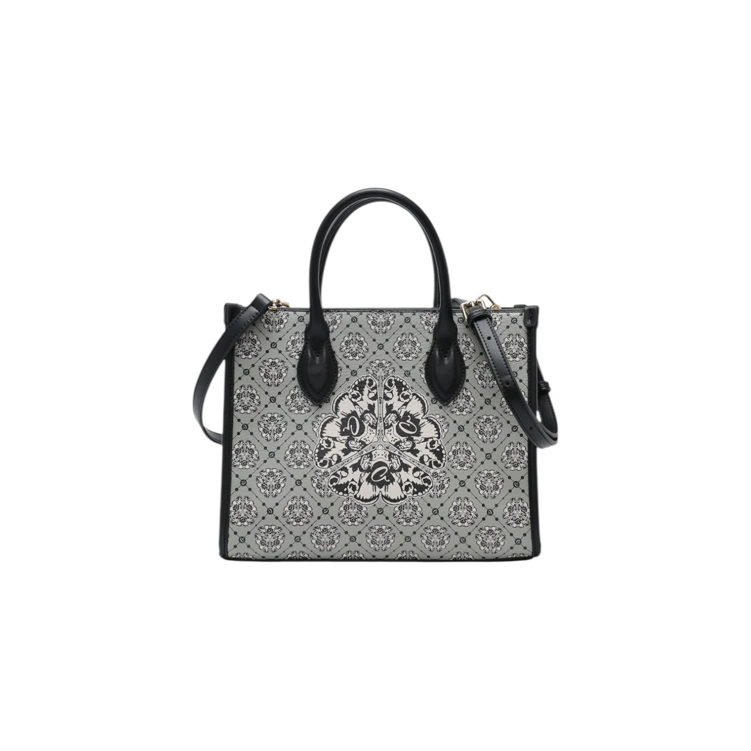 Women's Malin handbag with double handles. It is made of high-quality faux leather with repeating butterfly pattern. Inside it has an open compartment and a zippered pocket for organizing small items. It secures with a zipper and comes with a detachable, adjustable strap to be worn as a crossbody. Suitable for any color combination.