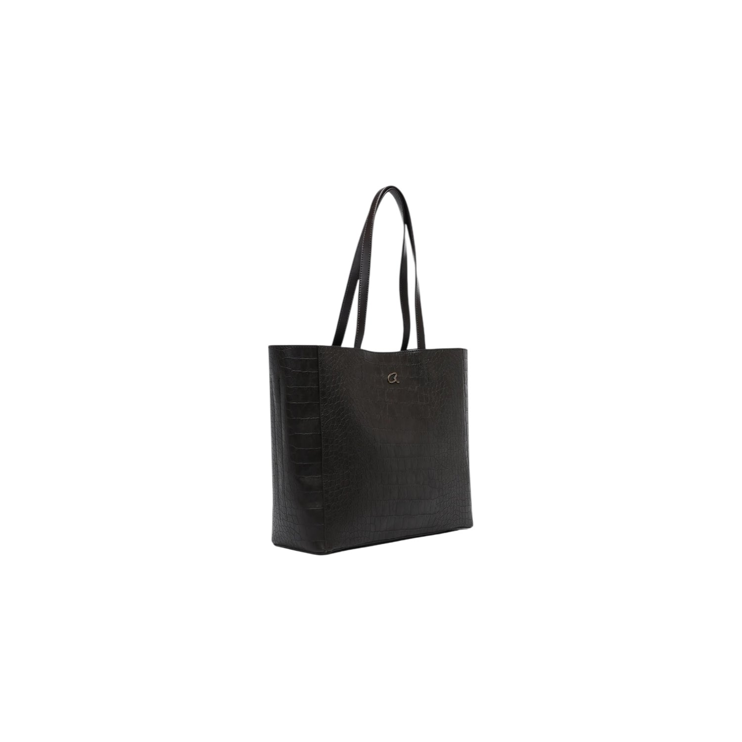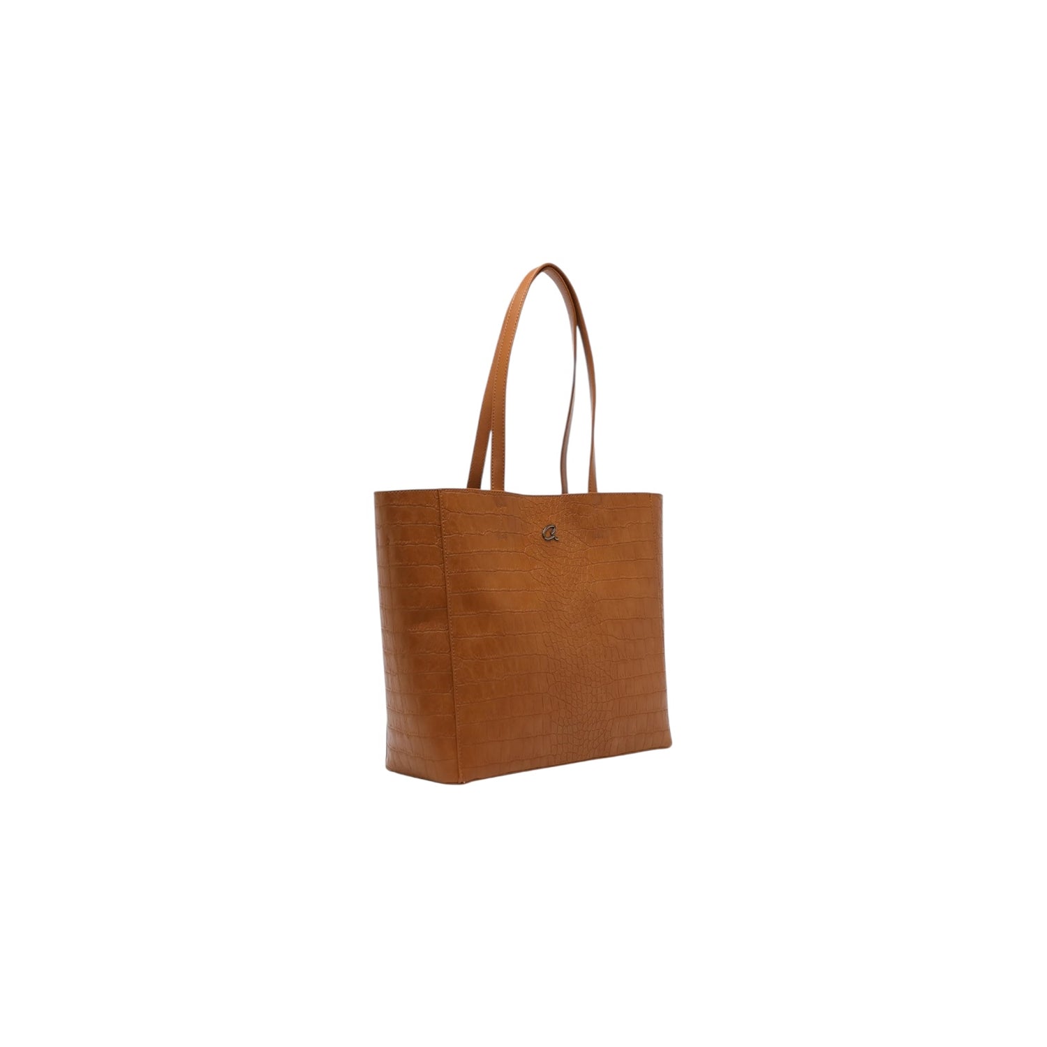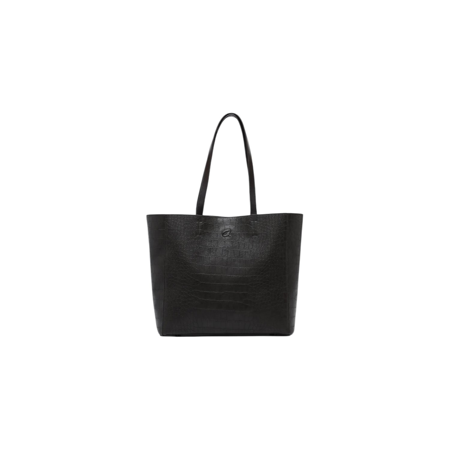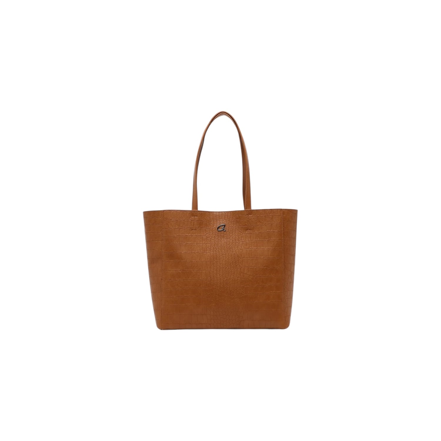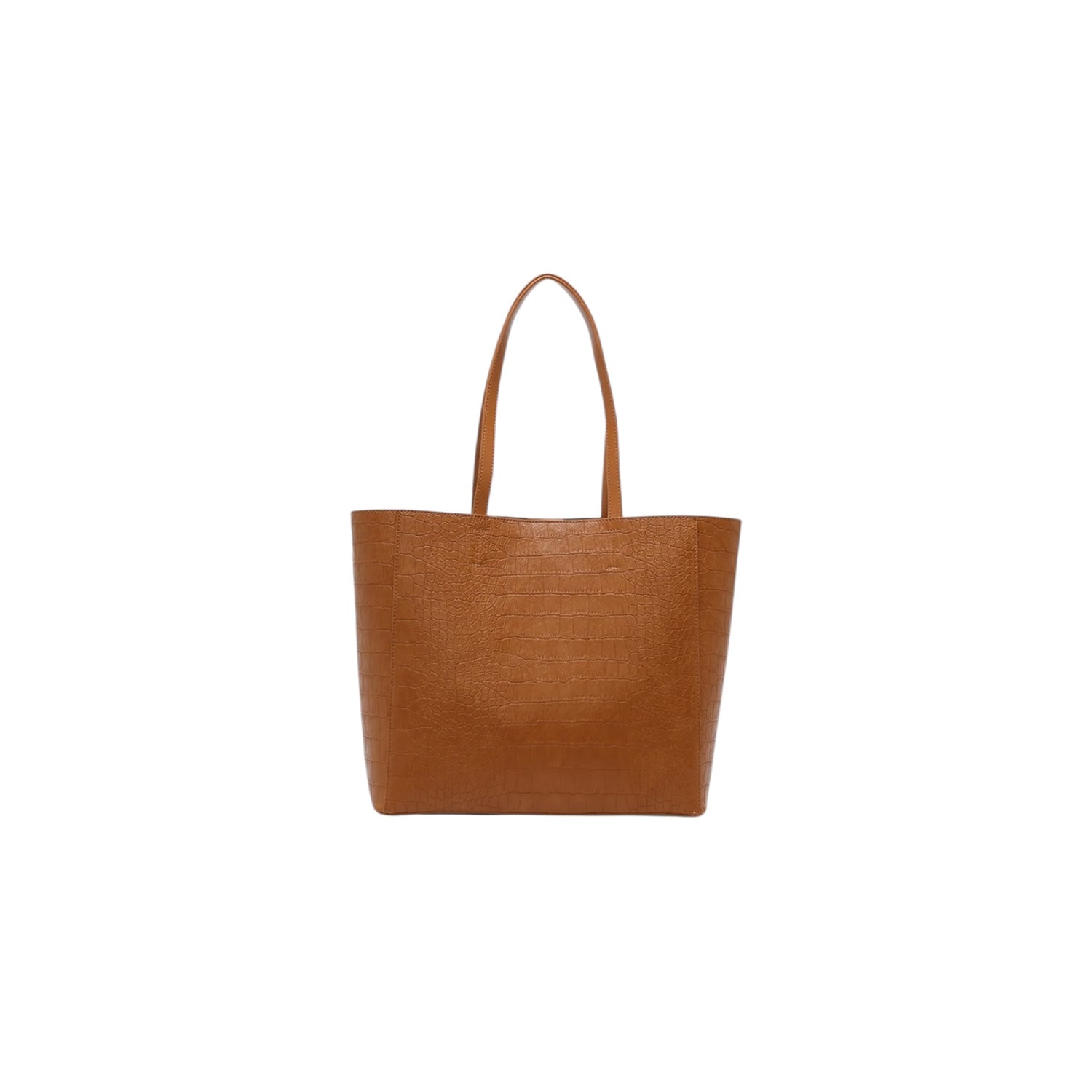 Women's Melitta shoulder bag. It is made of faux leather with croco texture and features double handle grip. Internally it is structured in three sections, one central and two side ones. It contains lining, two open pockets and one with zipper for organizing small items. It closes with zip and magnetic clasp. A classic bag design, which can be easily combined with any outfit.