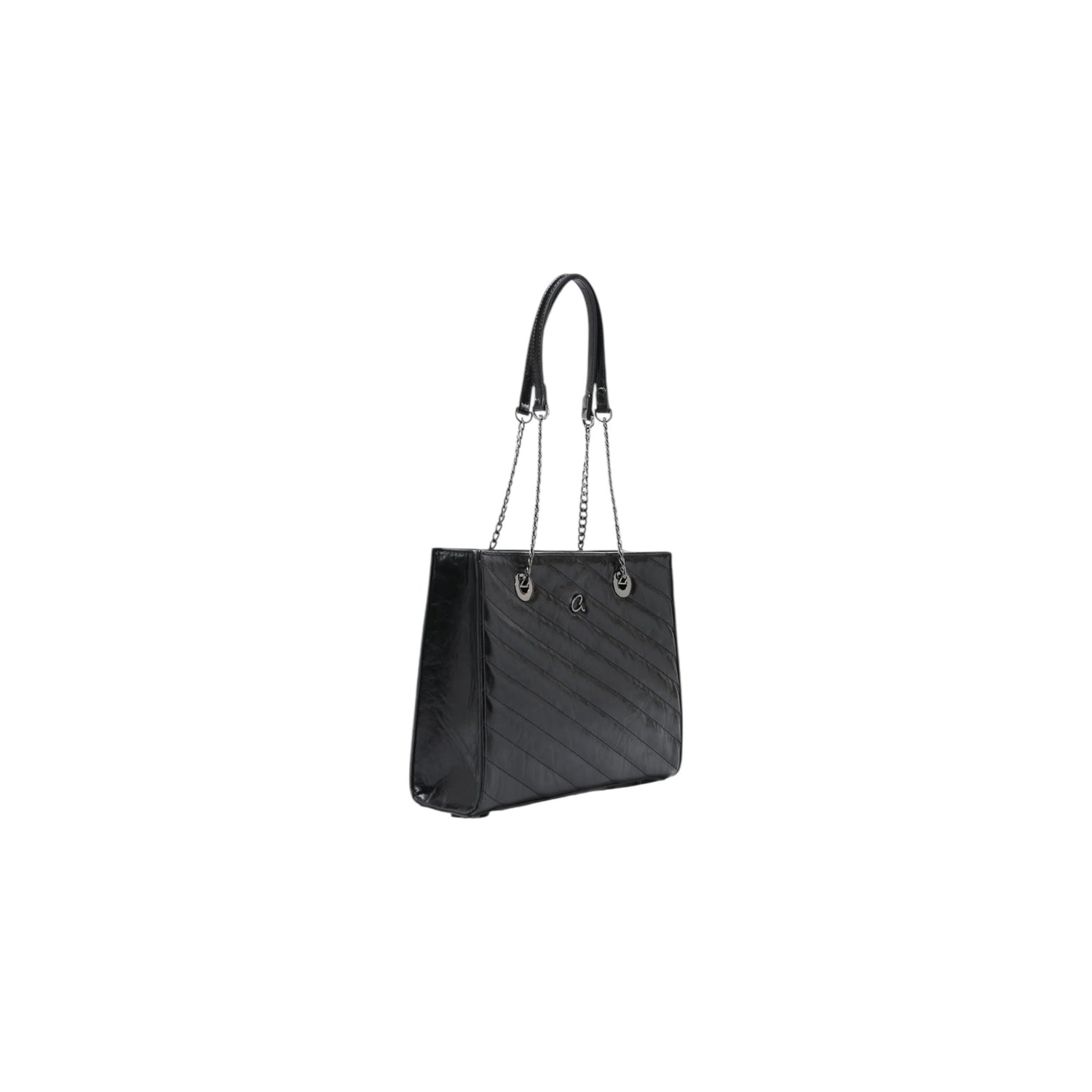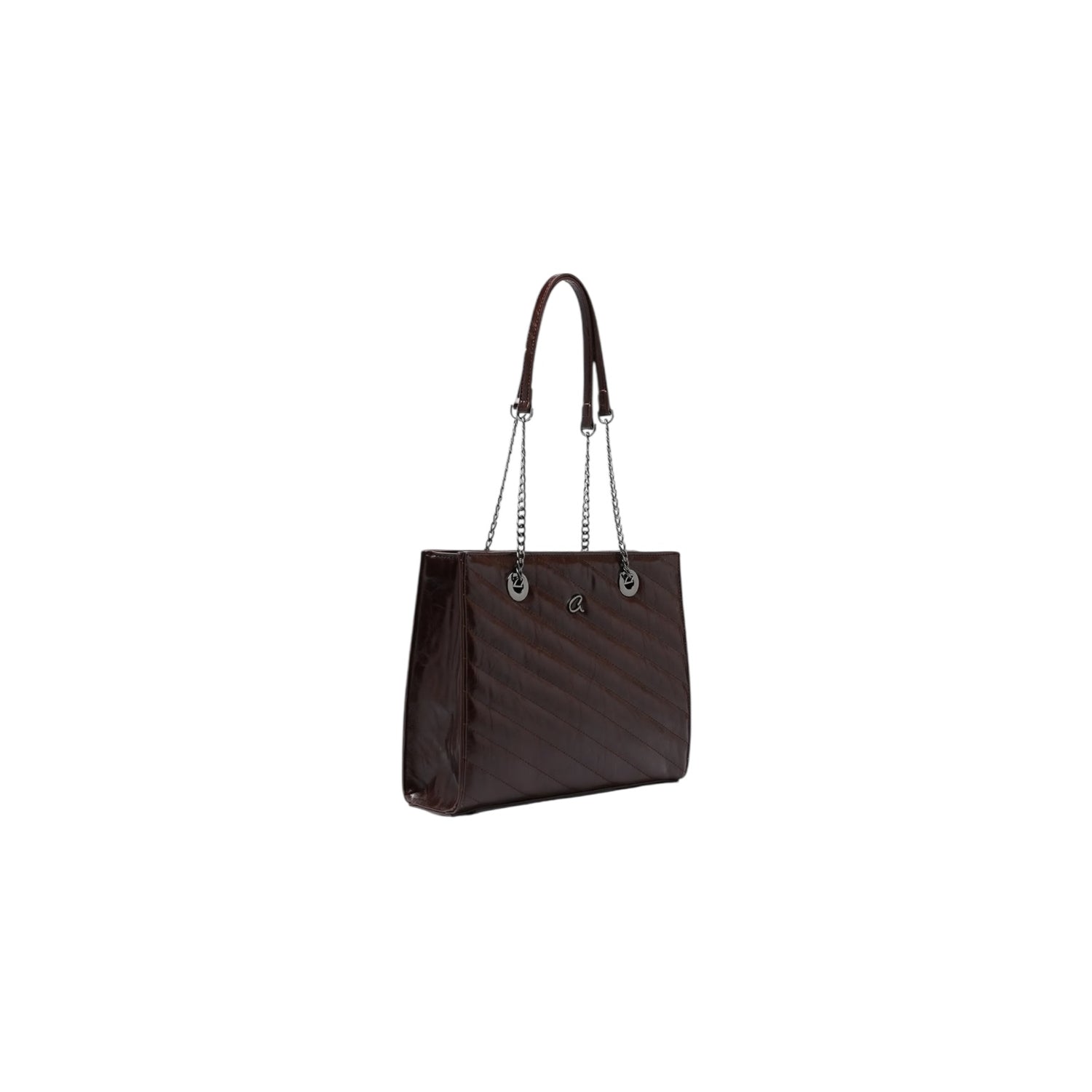 Women's shoulder bag Valeria with double chain handles, made of faux leather with seams. It has open compartments and a zipper pocket inside and is lined. With gunmetal details and a zipper closure. A classic bag suitable for any outing.