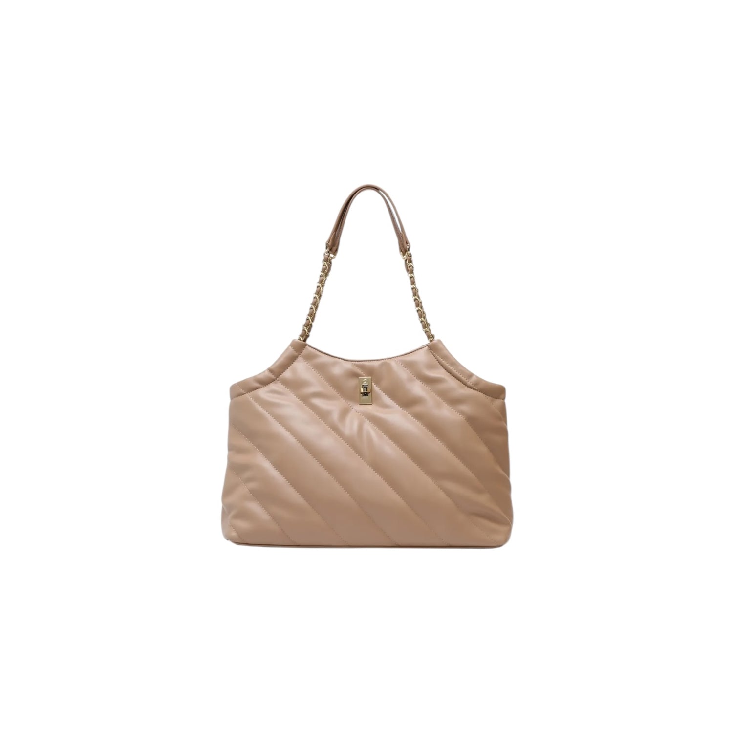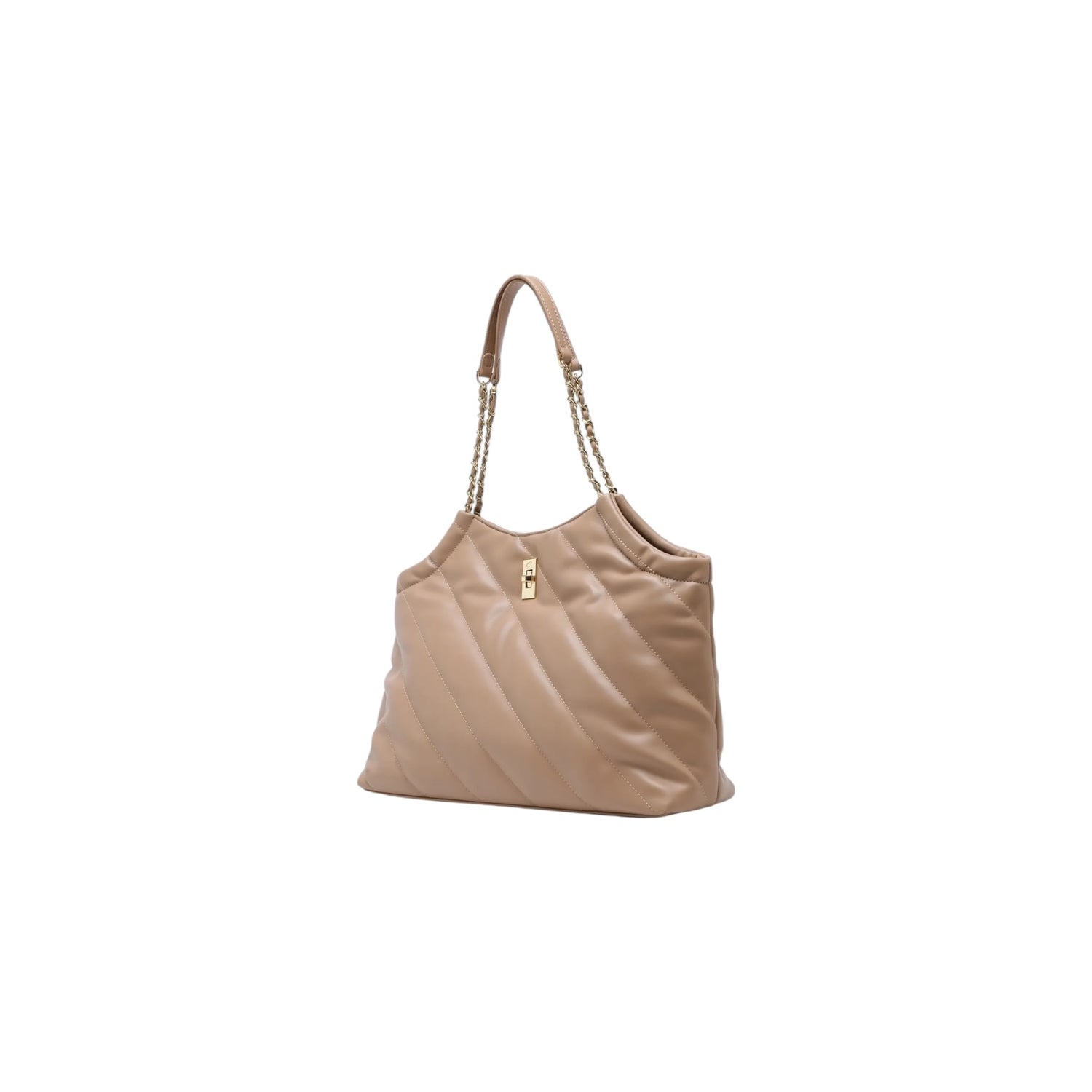 Women's Pacey shoulder bag made of soft-textured faux leather with quilted design. It features double straps with chain detail and secures with a gold rotating metal element. The interior is lined and has two open pockets and one with a zipper for organization. A bag with distinctive look and modern design for unique appearances.