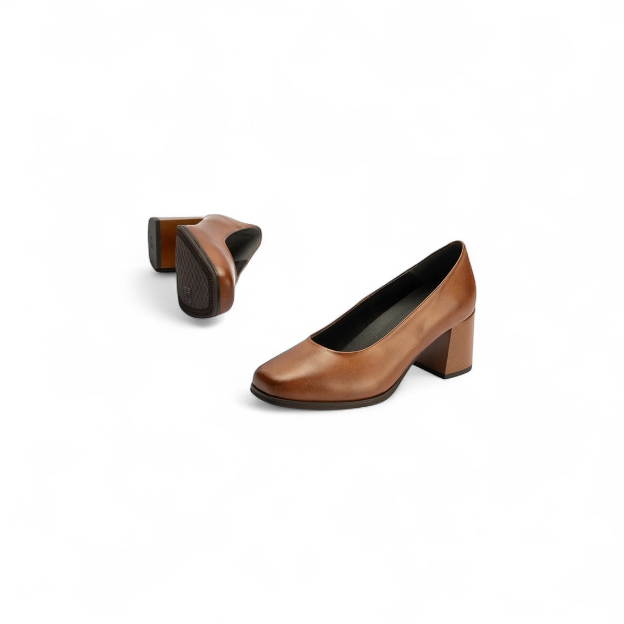 Women's high-heeled salon shoe in light brown, basic, simple and comfortable, ideal so that your feet do not suffer during the working day.