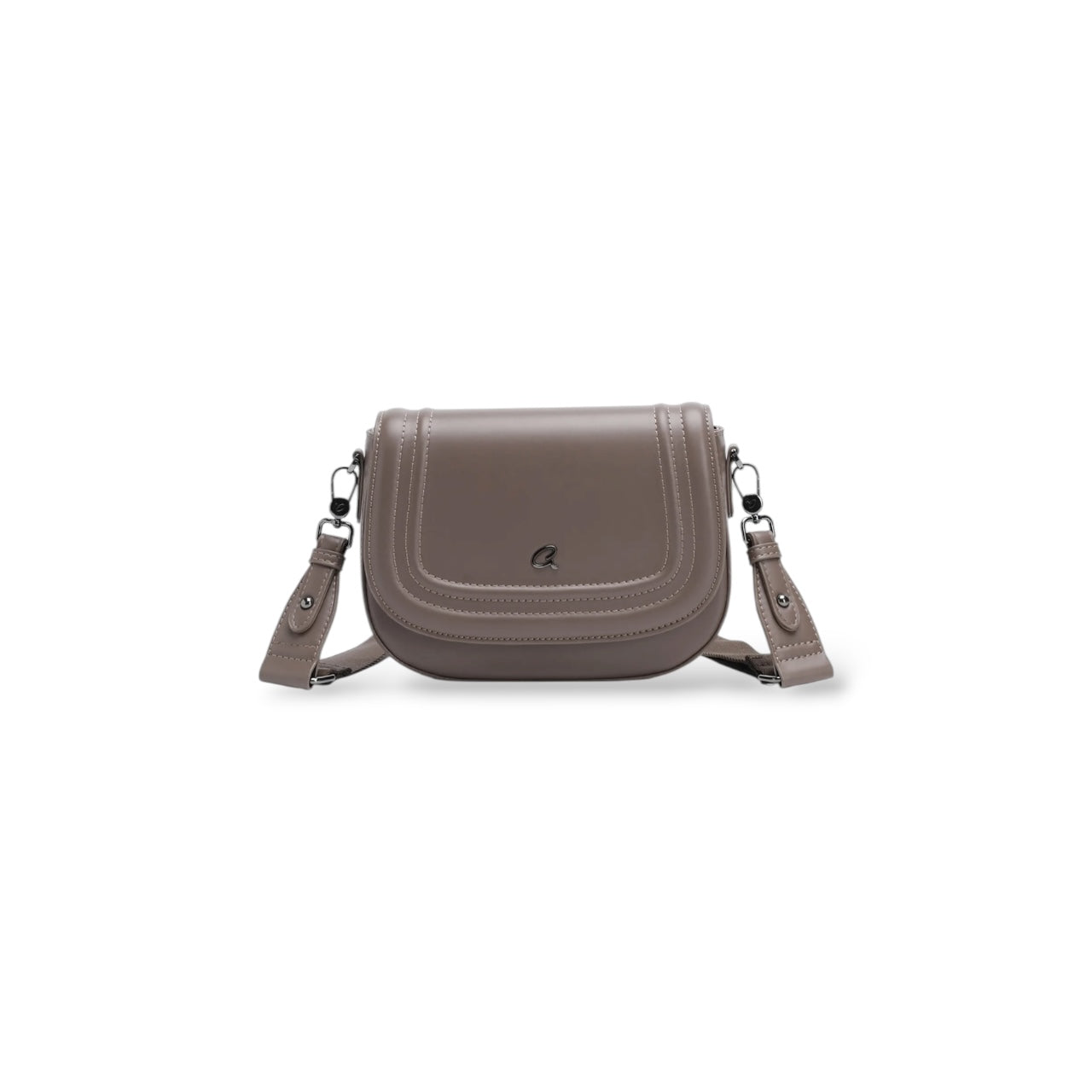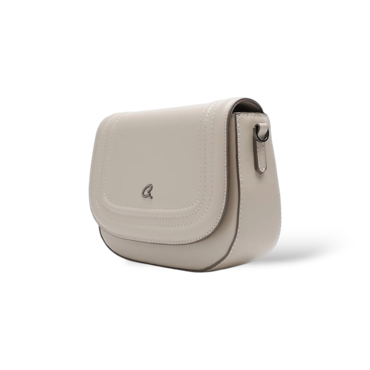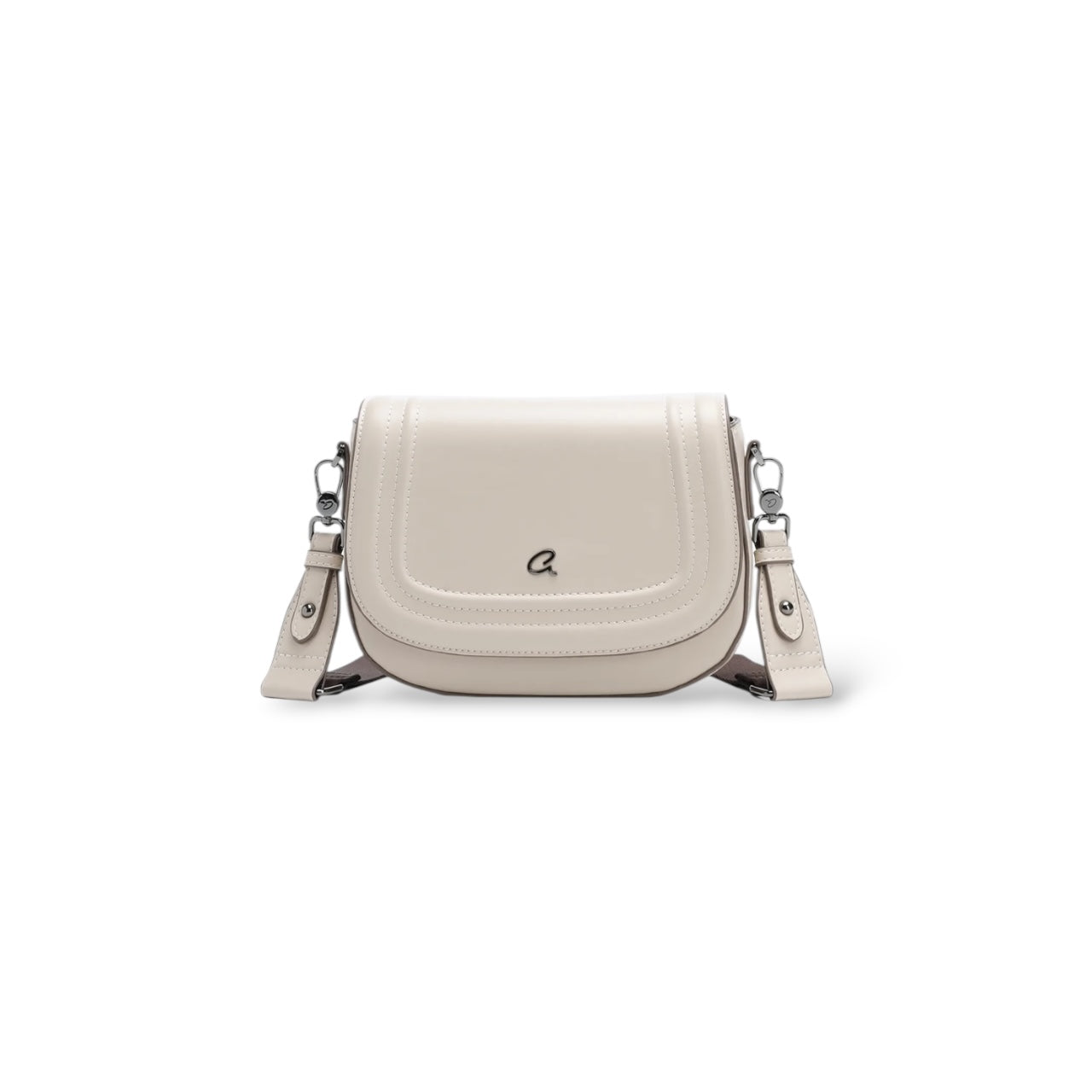 Women's Osanna crossbody bag with wide detachable strap. The interior is lined and has a zippered pocket for organizing small items. It secures with flap and magnetic closure. With a special curved shape and seams on the outside, suitable for everyday looks that will stand out.