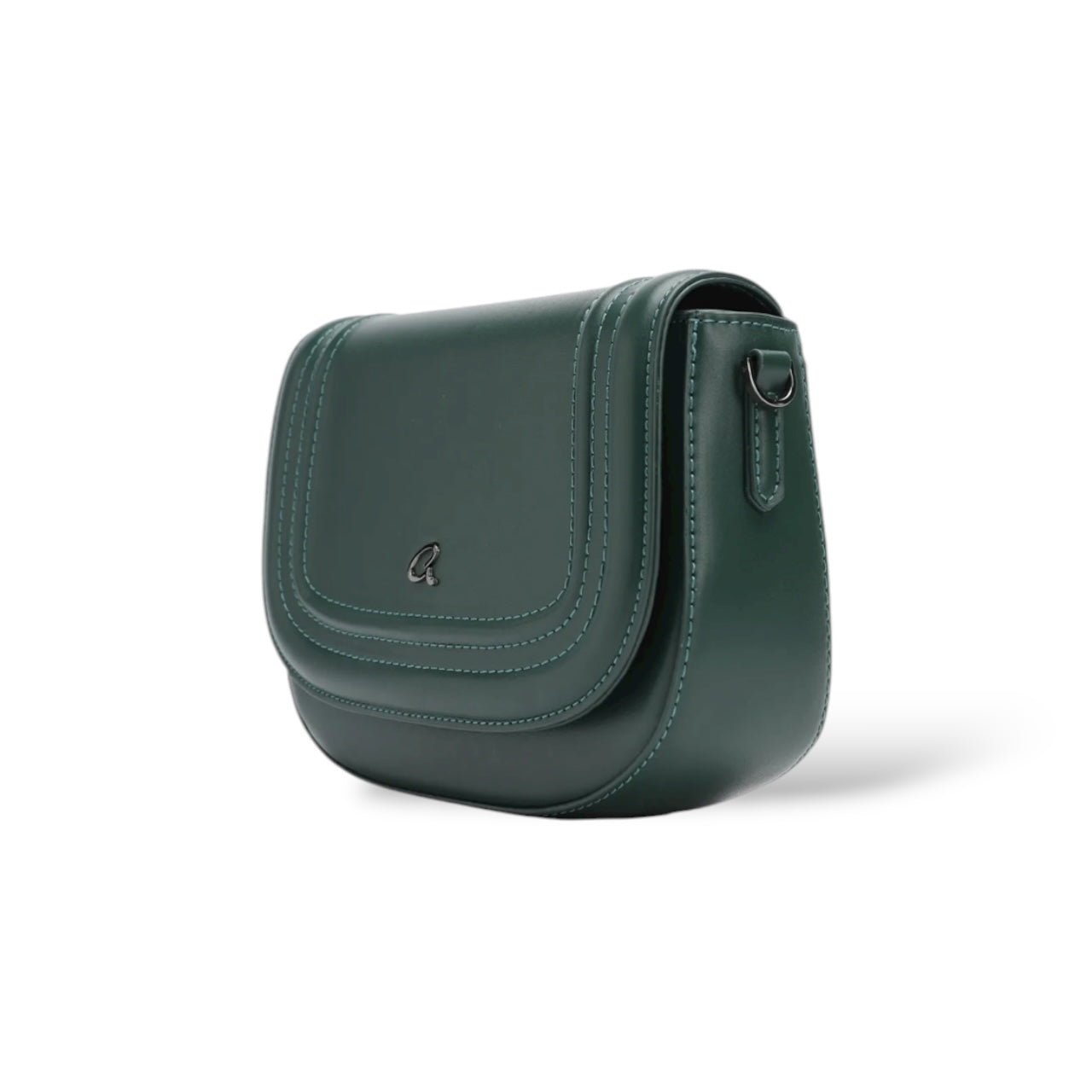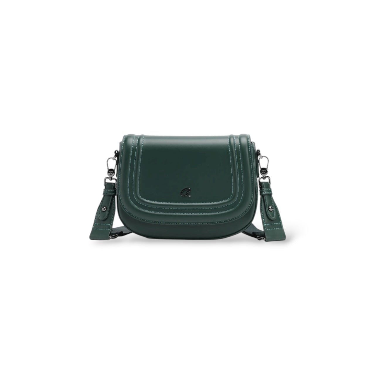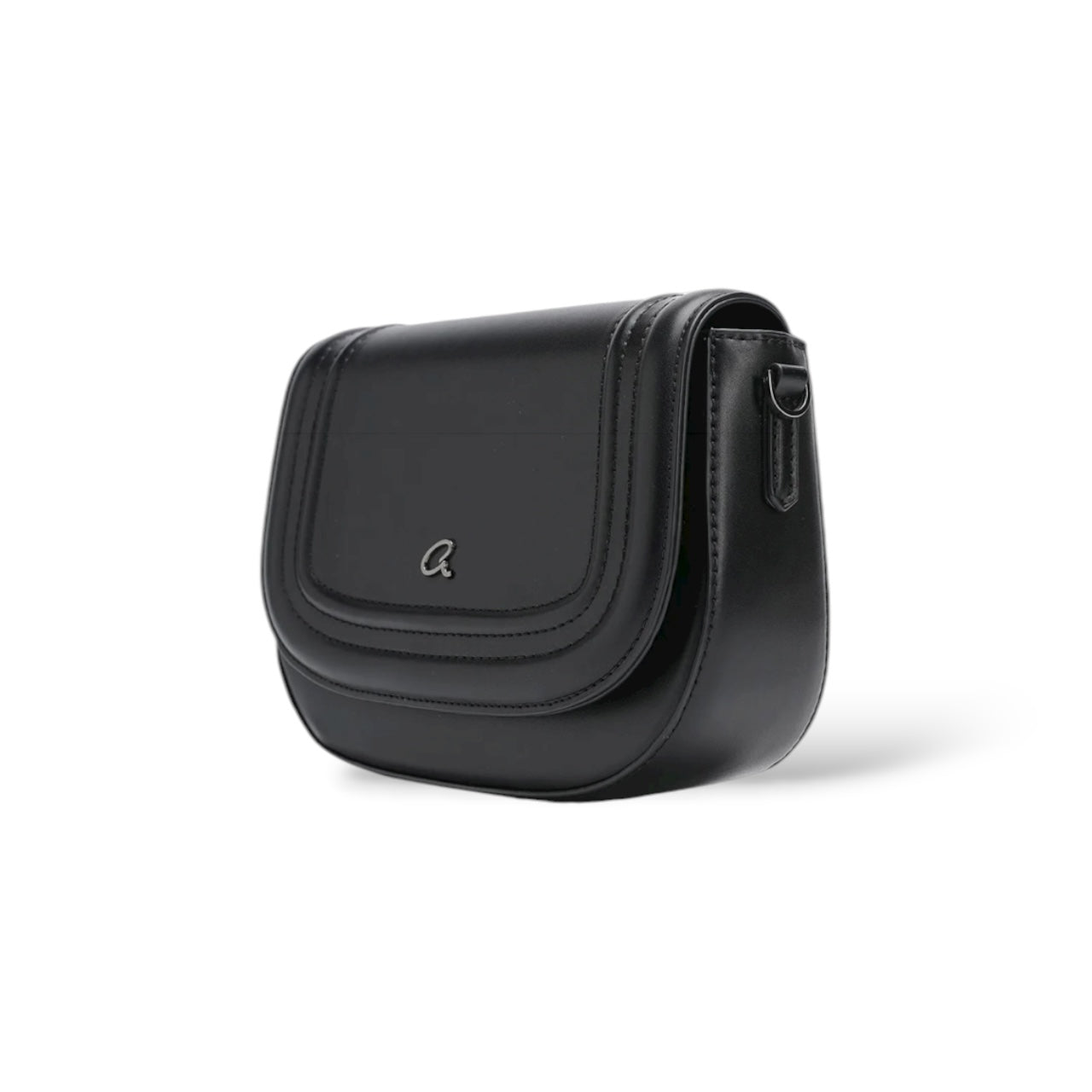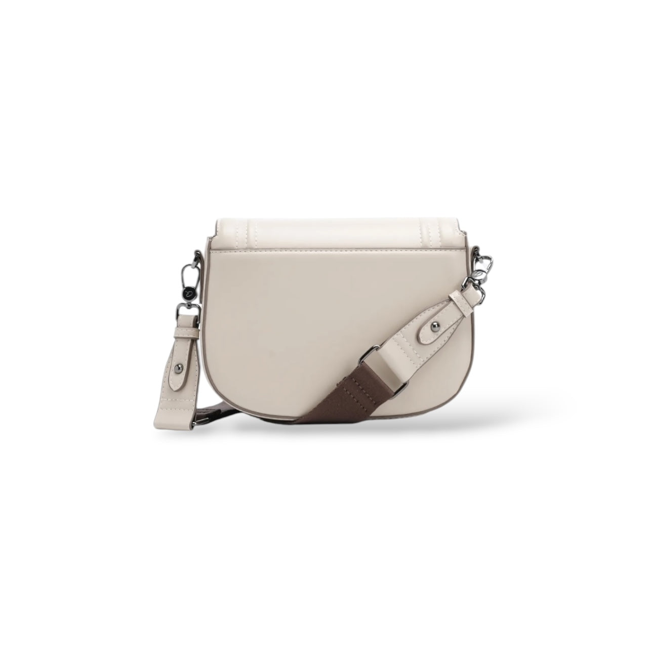 Women's Osanna crossbody bag with wide detachable strap. The interior is lined and has a zippered pocket for organizing small items. It secures with flap and magnetic closure. With a special curved shape and seams on the outside, suitable for everyday looks that will stand out.