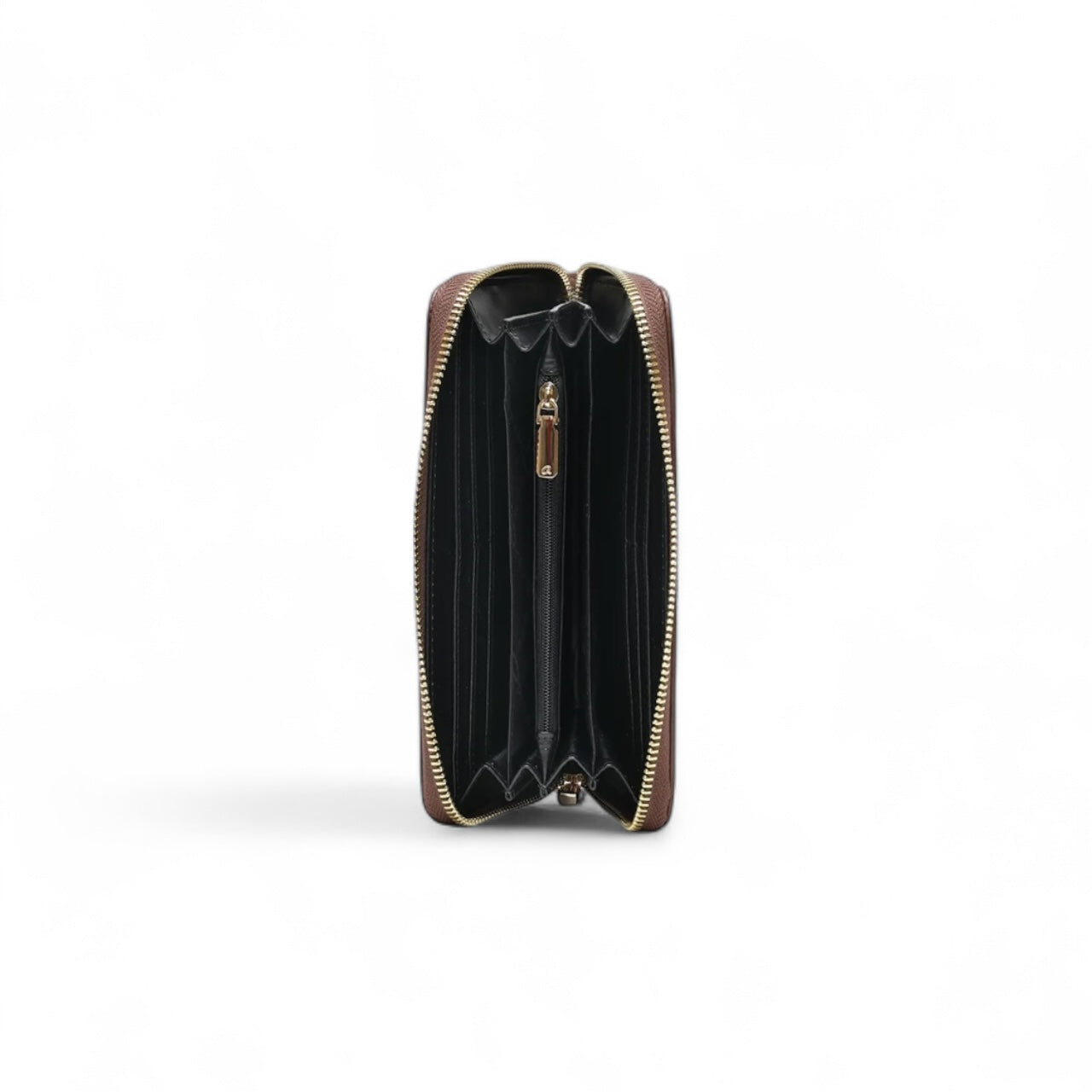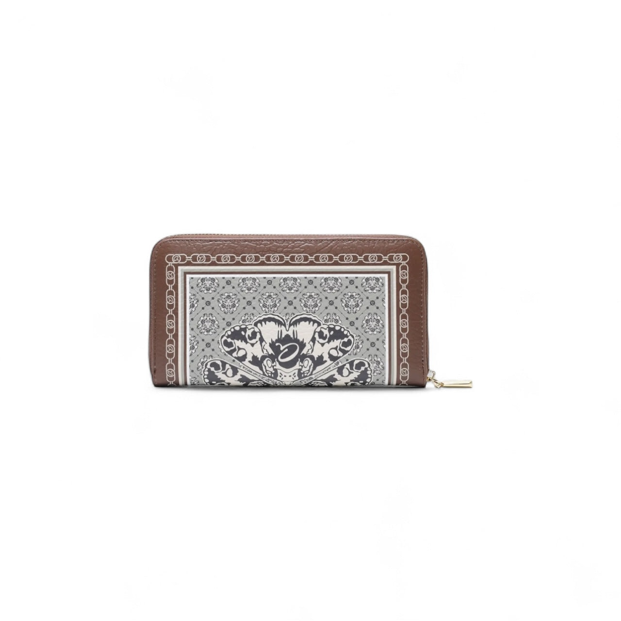 Women's wallet Malin, made of faux leather with axel butterfly print. Inside it contains a compartment for banknotes, multiple card slots and a central compartment with zipper for coins. Secures with a gold metal zipper.