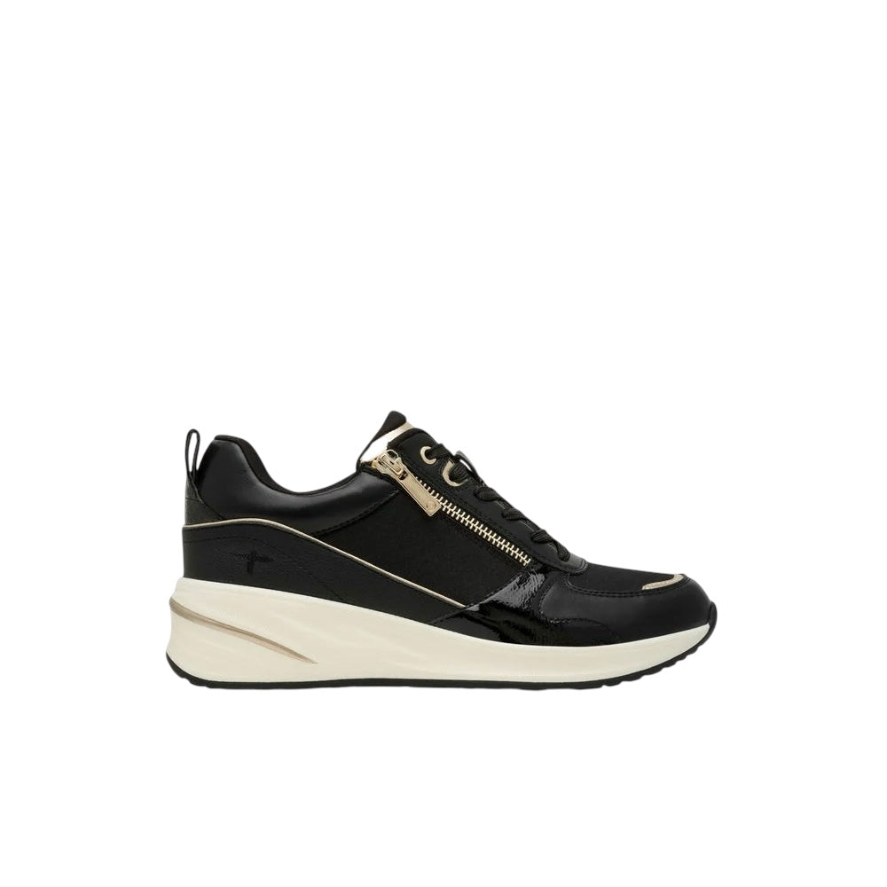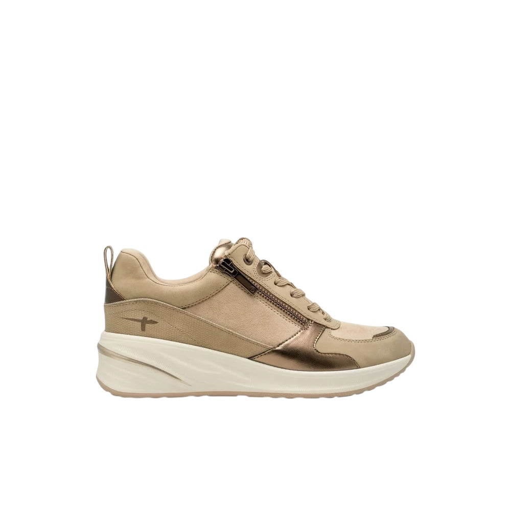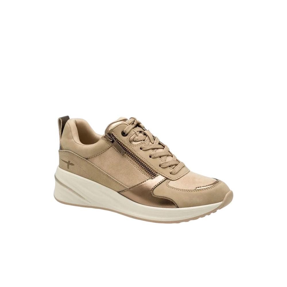 Step into your day with Tamaris Essentials low sneakers and let your confidence shine—reflective accents and shimmering details underline your individuality. Soft leather, faux leather, and textile blend for chic comfort, while the sturdy, textured sole brings urban vibes to every step. Enjoy flexible style with convenient lacing and a zipper, plus a removable sock for all-day freshness. Perfect for summer outings, everyday adventures, and moments when you want to own your style, your way.