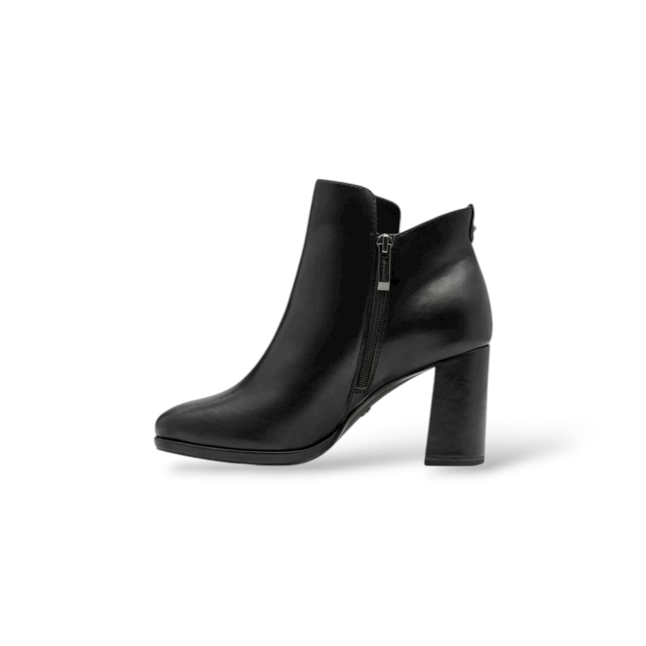 Step confidently into every celebration with these black leather Tamaris Essentials heeled boots, featuring an 80 mm block heel for a bold, empowering silhouette. The COMF.Lin+Touch memory foam footbed pampers your feet, adapting to your unique shape and supporting you through winter parties, business meetings, or chic city strolls. A.slide/A.shokk heel technology ensures grip and comfort, while the clean, modern look brings out your elegant, individual style—wherever your plans and passions take you.