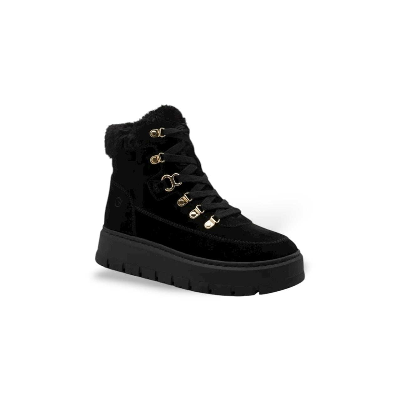 Step into your day feeling confident and cozy with these Tamaris Lace Boots—your go-to for fashionable warmth and urban adventures. The soft faux fur collar, trendy gold buckles, and sturdy 50 mm block heel add a modern edge, so you shine wherever you walk. With a comfy round toe, structured sole, and stylish braiding. Embrace every fall stroll and winter escape—authentic style was never this easy.