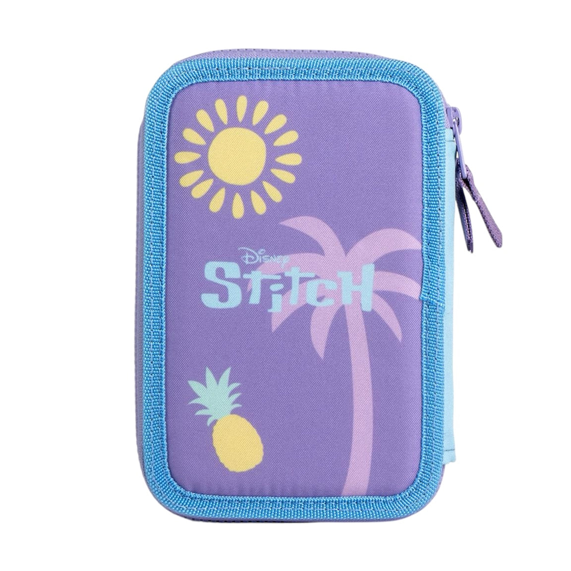 Stitch pencil case with accessories, featuring pens, pencils, and handy compartments – perfect for school and creative activities.