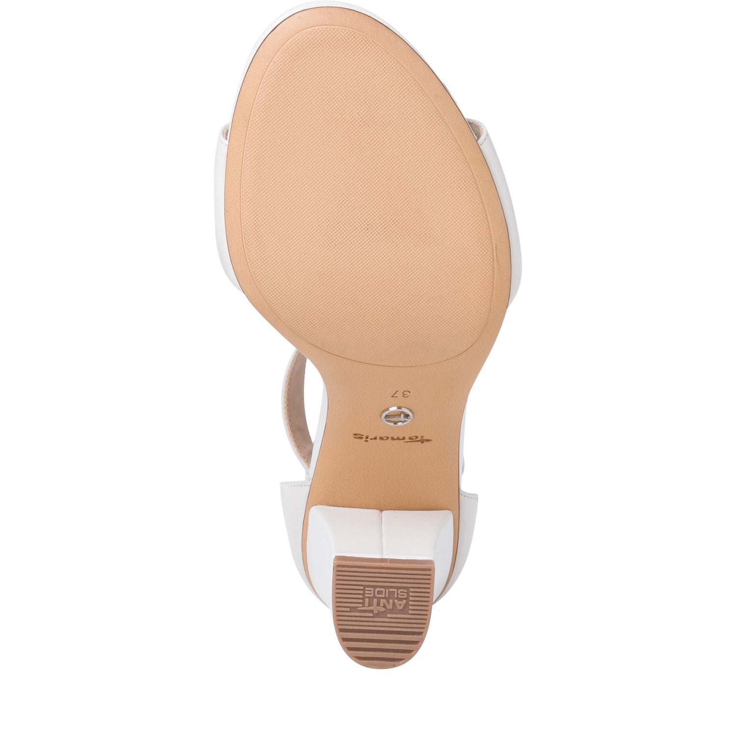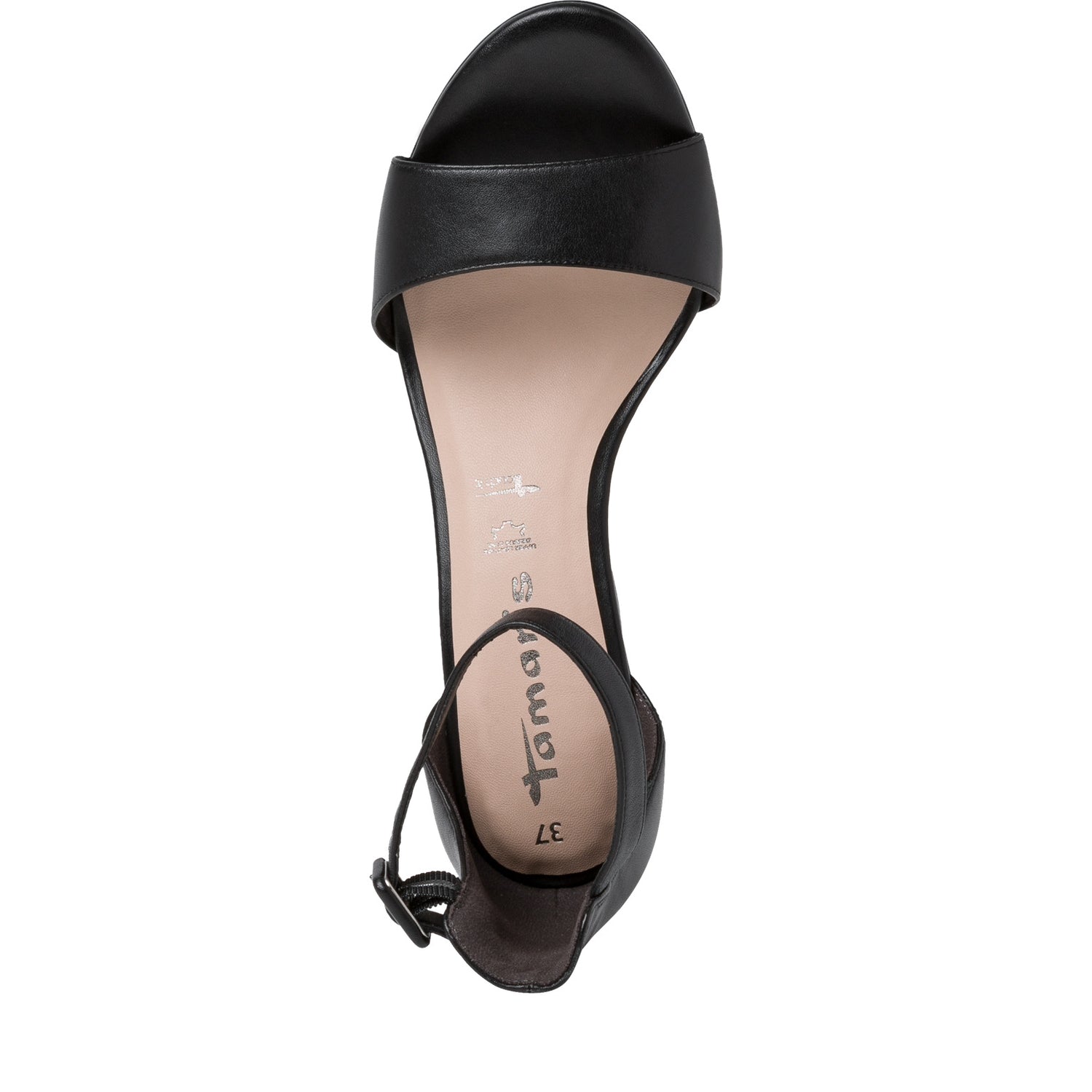 These heeled sandals by Tamaris not only appear stylish, the workmanship is also exquisite. The easy-care upper is leather. Shoes with a Cuban heel are the ideal choice if you don`t want to compromise on style or comfort. The wide heel ensures perfect stability, meaning you never have to worry about twisting your ankle or getting cramp from overly thin heels. Anti-Shokk is a patented technology integrated into the heels, and which absorbs footstep impacts by more than 50 percent, step by step. That helps preserve the spinal column, discs and joints.