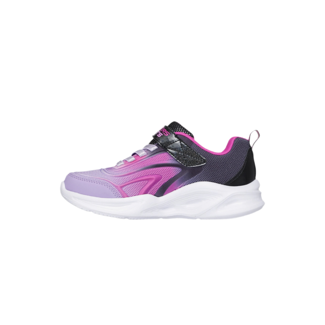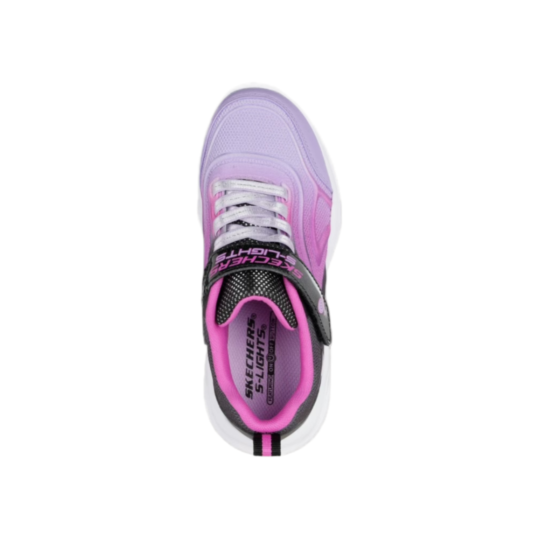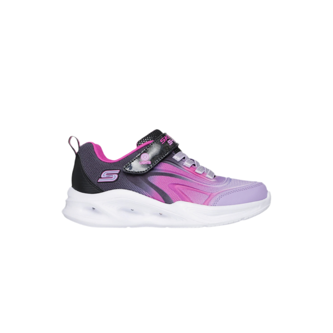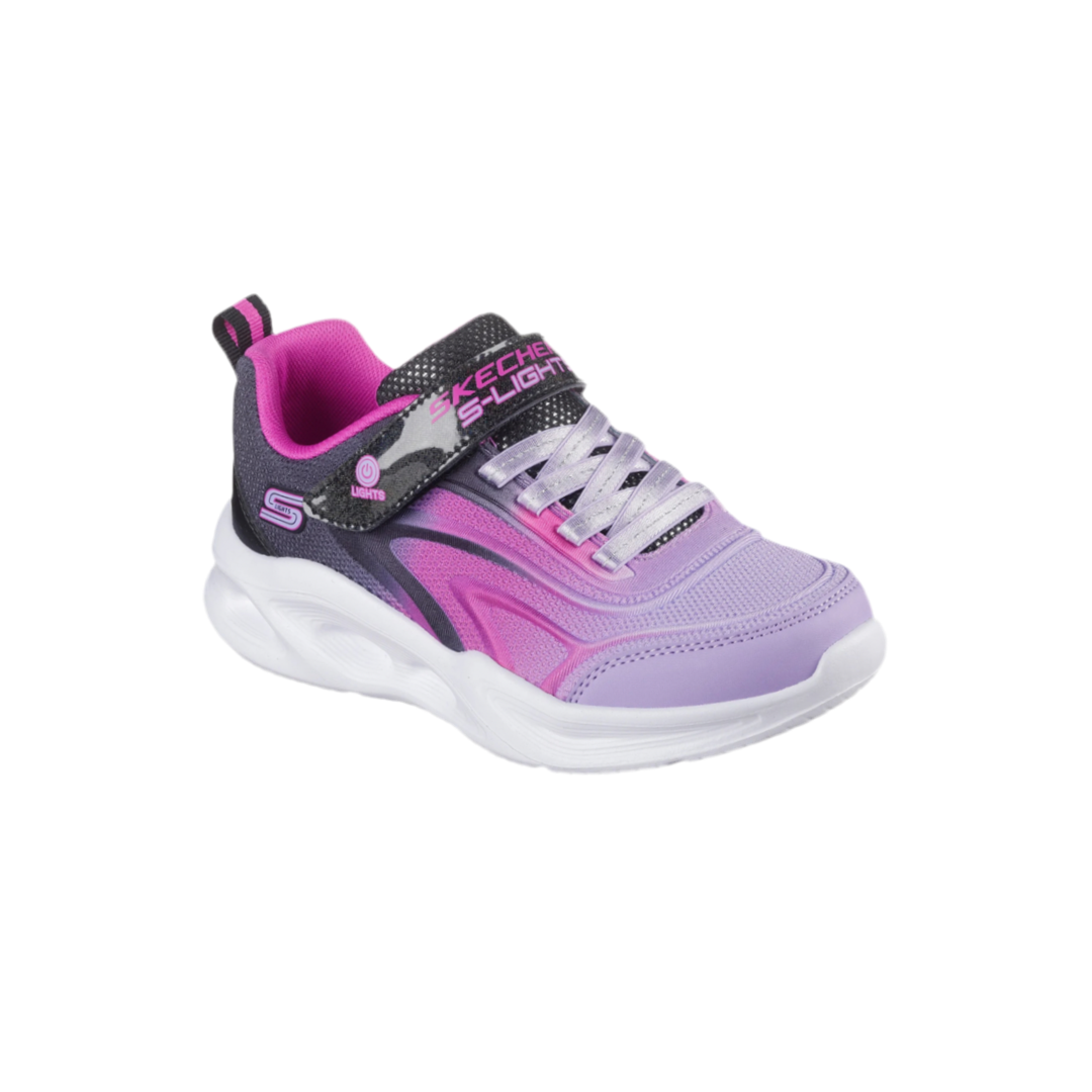 Light up the playground in colorful fun with Skechers S-Lights®: Sola Glow - Color Breeze. This Skechers adaptive closure design features an ombré mesh and synthetic upper with embossed detail, an adjustable instep strap, fixed stretch laces, and a well-cushioned light-up midsole