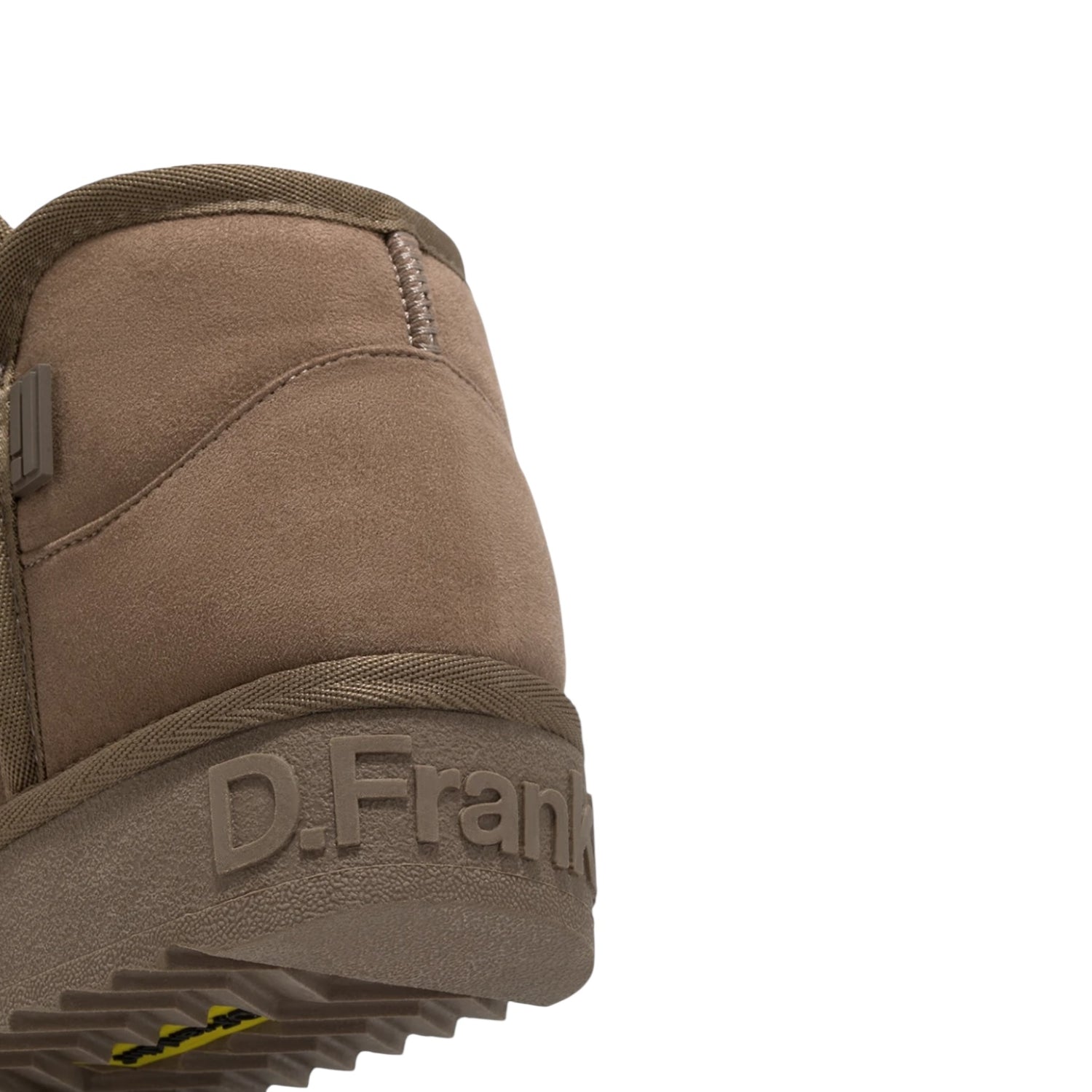 Nordic low-cut Australian boots. A winter collection created for those who chase the cold. We define the chilly winter days with a warm design for walking the streets. This boot model is made of high-quality microfiber fabric that protects against moisture and the first drops of rain. Its redesigned sole provides greater lightness for a comfortable step. Additionally, it features our personalized emblem on the heel. Asymmetrical cut design in taupe tone and synthetic fur inner lining for superior warmth.