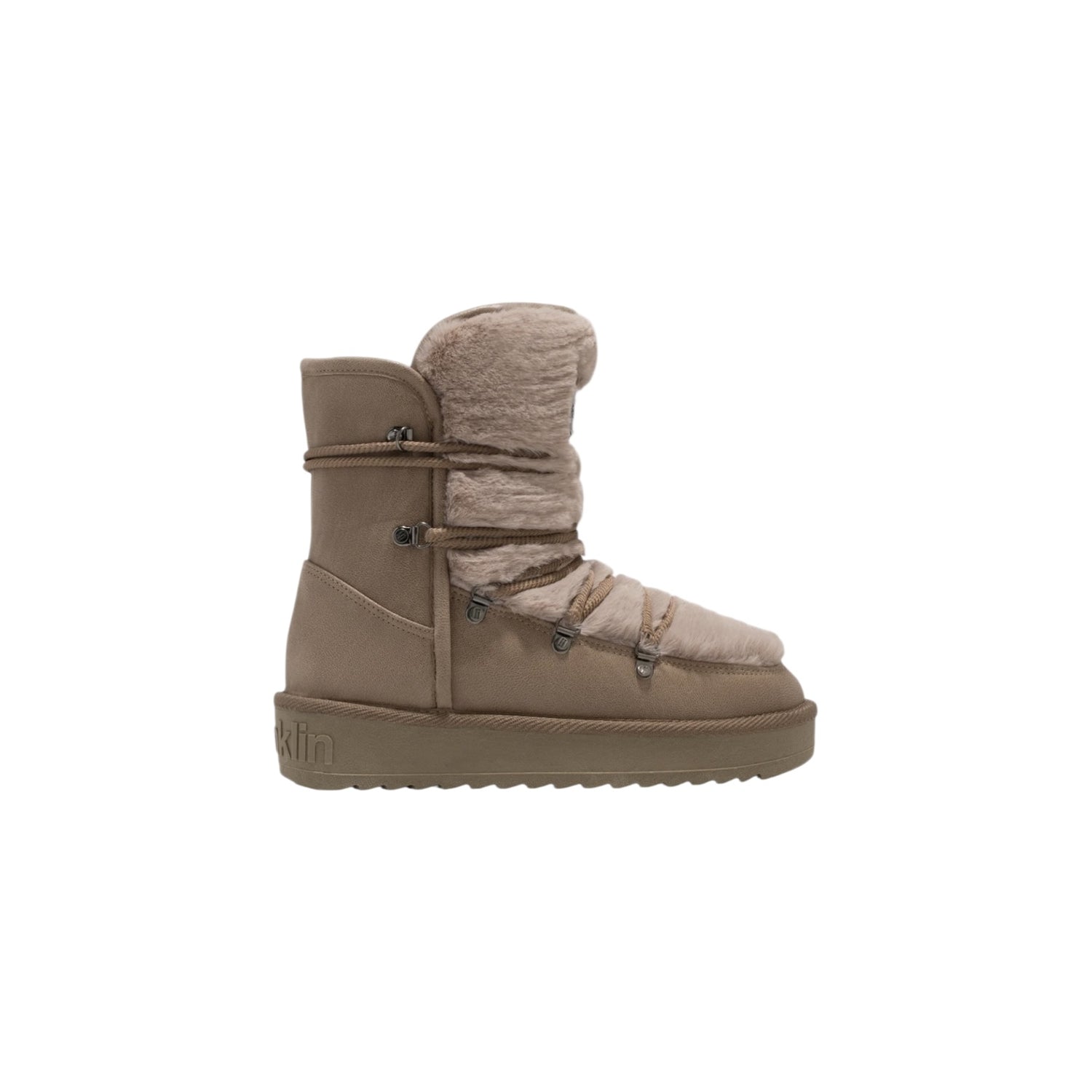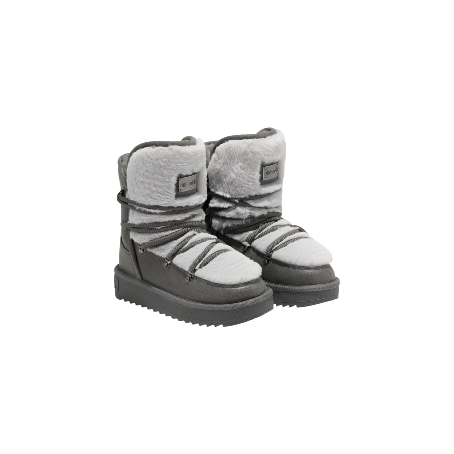 Australian boots with Nordic exterior fur. A piece designed to venture into the cold streets. We define urban style with a warm design created for chilly days. This model is made with high-quality synthetic fabric. Its redesigned sole provides greater lightness for a very comfortable step. Additionally, it features our personalized emblem on the heel and laces on the front. Asymmetrical cut shaft design in grey tones with synthetic interior lining for superior warmth.