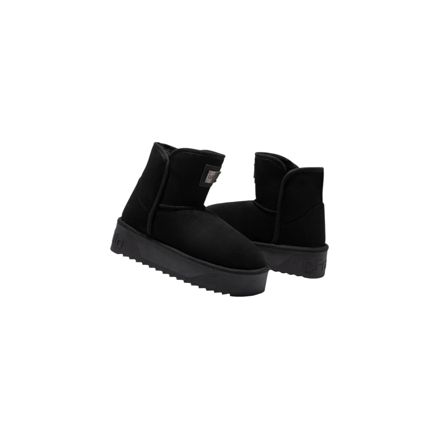 Aussie boots Nordic collection. Our winter capsule descends from the slopes to your outfits. A design with après-ski aesthetics conceived for the coldest days. This low-cut black bootie features high-quality water-repellent microfiber fabric. Its redesigned sole makes it lighter and more comfortable to wear. It also features our personalized emblem on the heel and contrasting sole. In addition, its synthetic fur lining gives it the ultimate winter touch. Created using PETA Approved-Vegan materials and inner lining with 30% recycled materials (Global Recycled Standard).
