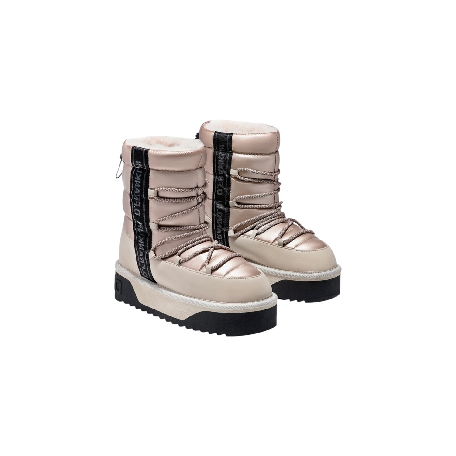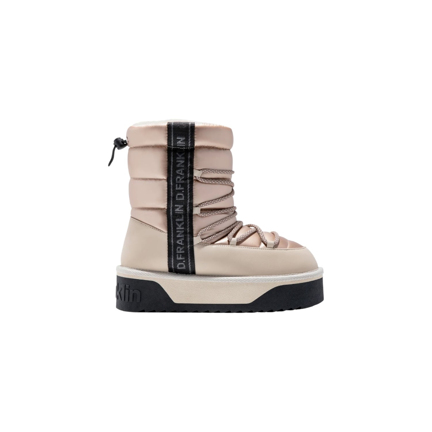 Nordic D.Franklin boots with quilted finish. An urban design created to face the cold streets. We define cold days with a warm and distinctive piece. This model is made with high-quality, lightweight, and flexible fabrics. Its double-height sole provides great comfort. Additionally, it features our custom emblem on both the heel and the side. Its beige laces ensure a perfect fit and support and include reflective details. Straight-cut, adjustable shaft design in beige tones. Synthetic inner lining for superior warmth.