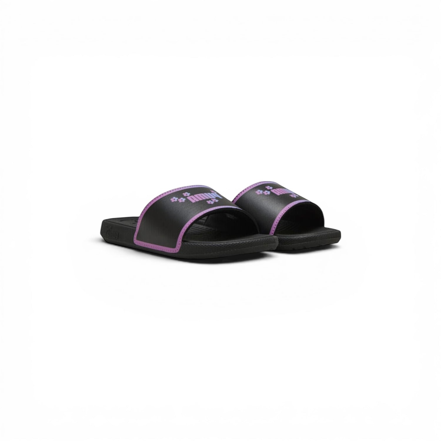 Flip flops slide type, from the company PUMA, in black color. Flip flops are the best solution during the warm months of the year, so that your child does not walk barefoot or with closed shoes. They can be used indoors, for a walk, at the beach or at the pool. They provide comfort, as they do not restrict the foot and do not make it sweat.