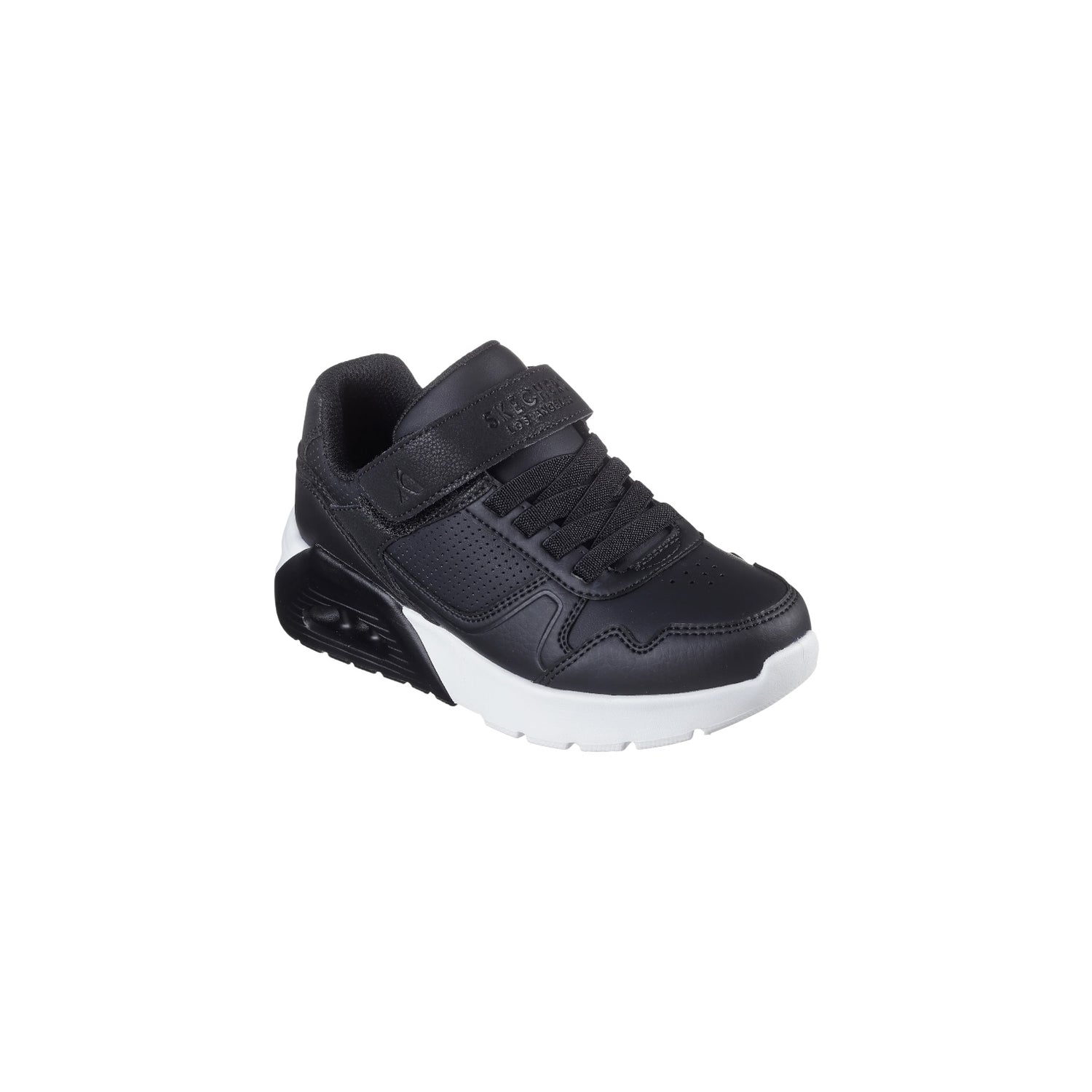 Kick it in style with the classic Skechers Street™ UNO Lite 2.0 - Pillar Duo. This lightweight fashion sneaker features a synthetic duraleather upper with quarter perforations, stretch laces, an adjustable instep strap, and a cushioned Skechers Air-Cooled Memory Foam® insole.